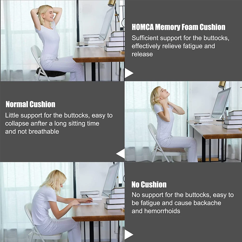 2. HEMORRHOID PILLOW – Made from premium memory foam – uplifts your body to stabilize and align your spine and thus lets you sit ideally for a long time without causing any pain to your back and lower body.