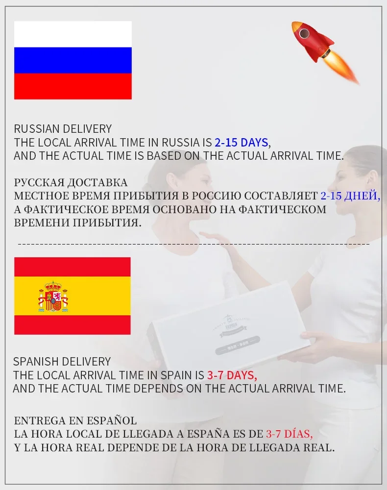 Regarding Russia Europe, choose a local warehouse, we usually ship within one working day after you place an order, and arrive within about a week. For other orders, about 2-3 weeks.