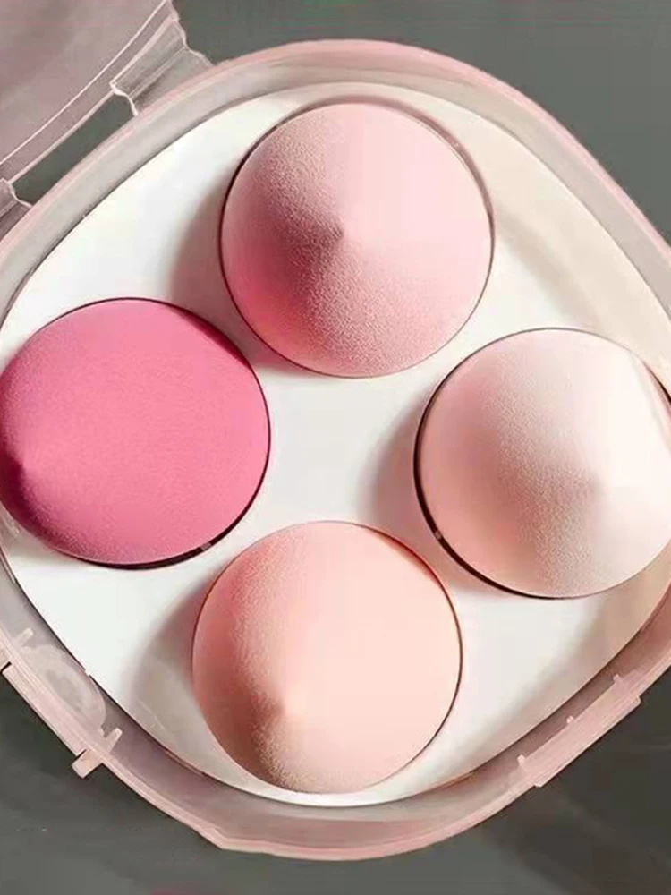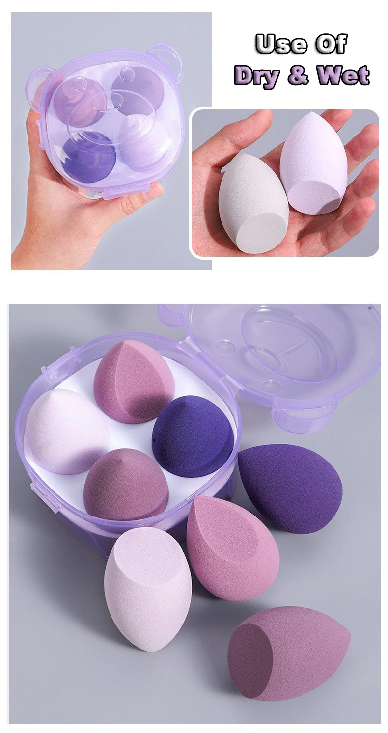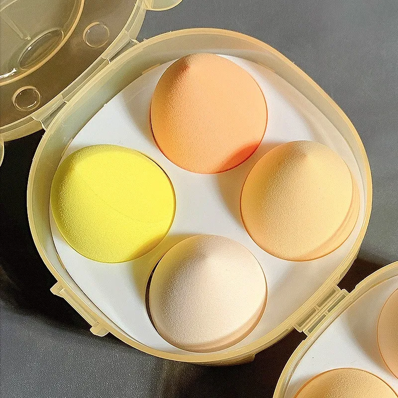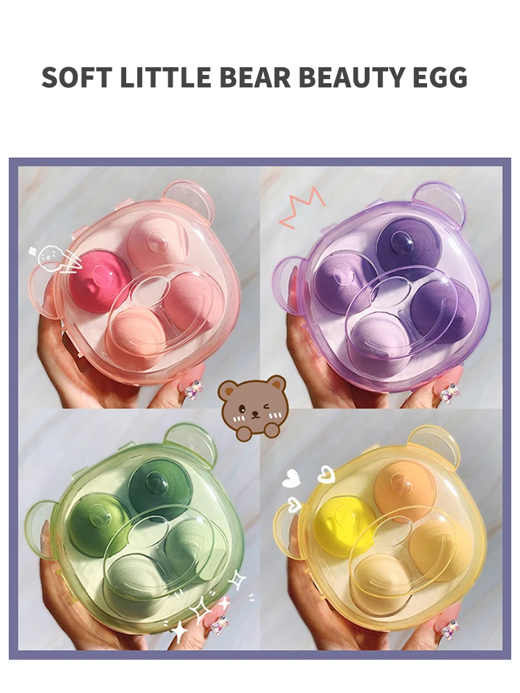 Offer Price4Pcs Super Soft Beauty Eggs Reusable Mini Sponge Puff Portable Makeup Tools Gradient Cosmetic Egg With Cute Bear Storage Case