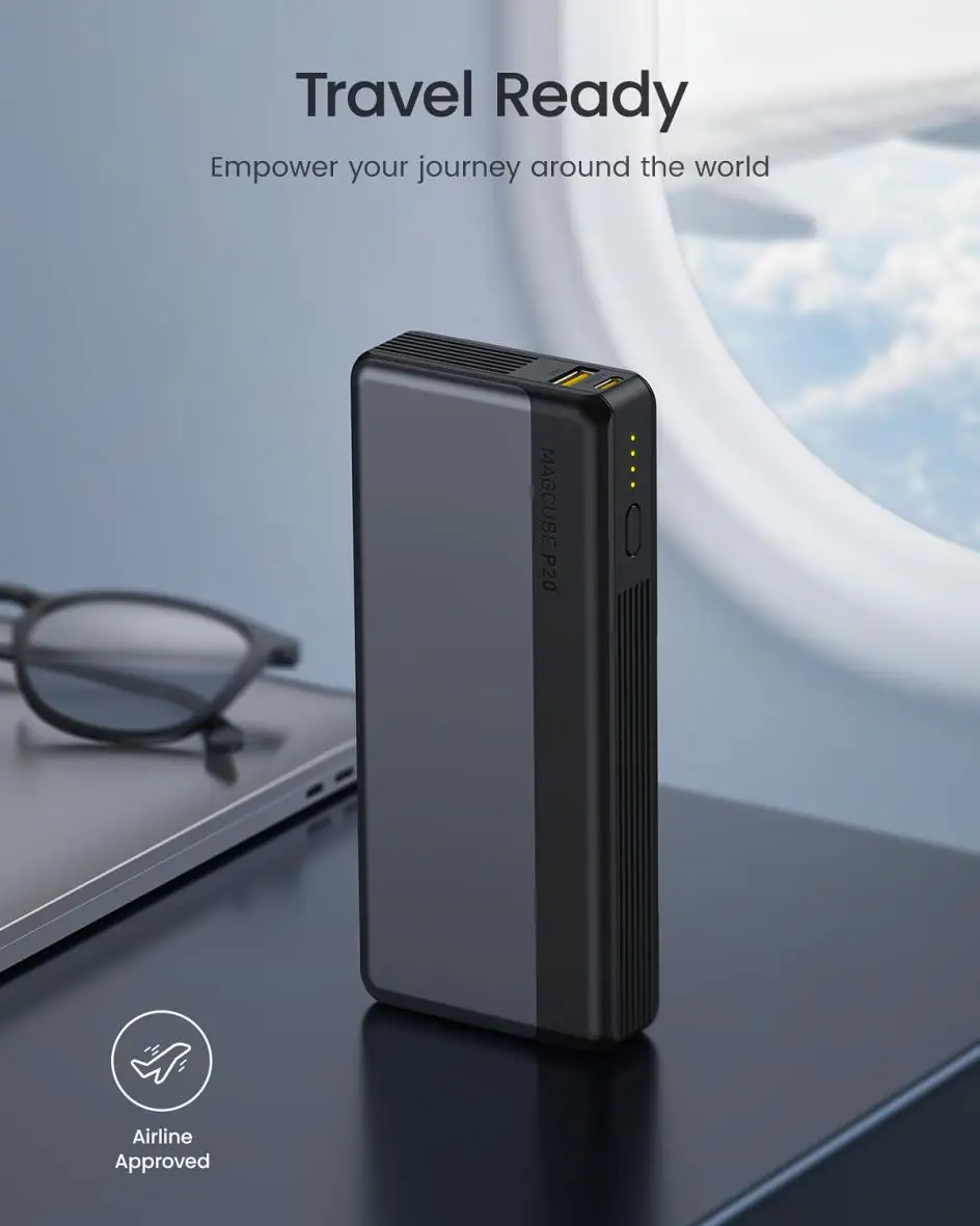 Great for On-The-Go Charging6.02*2.64*0.98inches in size and 0.82lb in weight, the fast-charging battery pack for phones and laptops is compact and portable, and you can easily slip it in your backpack or suitcase and take it anywhere to empower your journey. With 72Wh rated energy, you can take the power bank on the plane for business trip or global travel. A handy companion for weekend trips, traveling, hiking, camping and more.