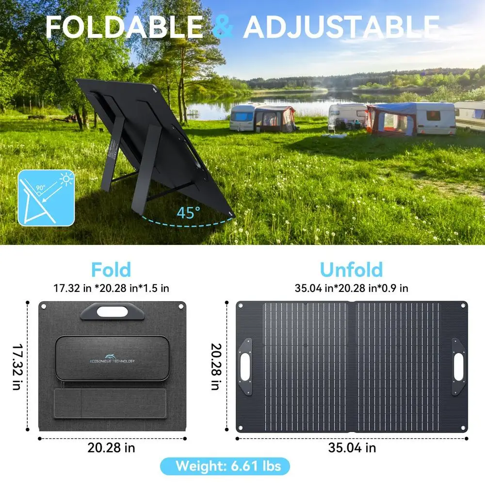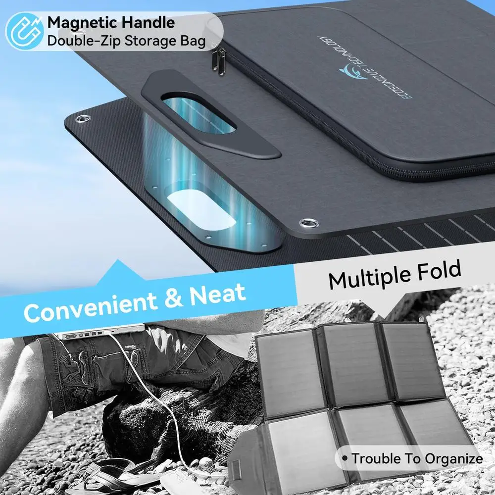 This 60 watt solar panel has 4 ports including MC4 cable, USB-C, USB-A and a DC output, being compatible with all kinds of devices as well as power stations, and able to meet your needs in defferent occasions.