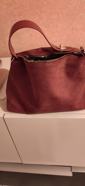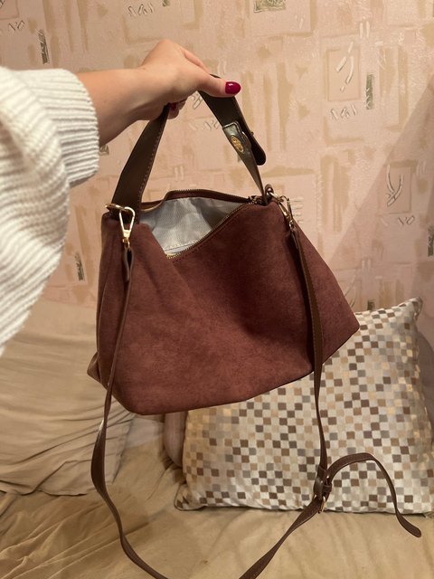 Unfazed bag, ale viglyadak is cheaper in the photo of the seller. Not suede, But fabric imitatsiya. This is good. Dovgiy renimy is dovgiy. I covered Yogo in two times, wearing it on my shoulders.