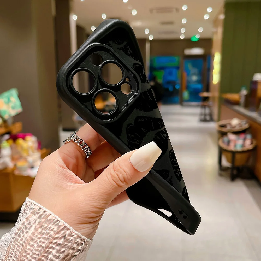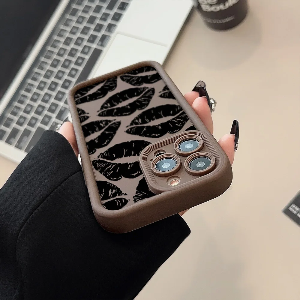 Offer PriceBlack Lips Kiss Print Soft Matte Phone Case For iPhone 13 11 Case iPhone 15 14 16 12 Pro Max XR 7 8 Plus SE Silicone Cover Funda
