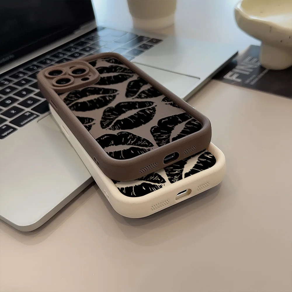 Black Lips Kiss Print Soft Matte Phone Case For iPhone 13 11 Case iPhone 15 14 16 12 Pro Max XR 7 8 Plus SE Silicone Cover Funda