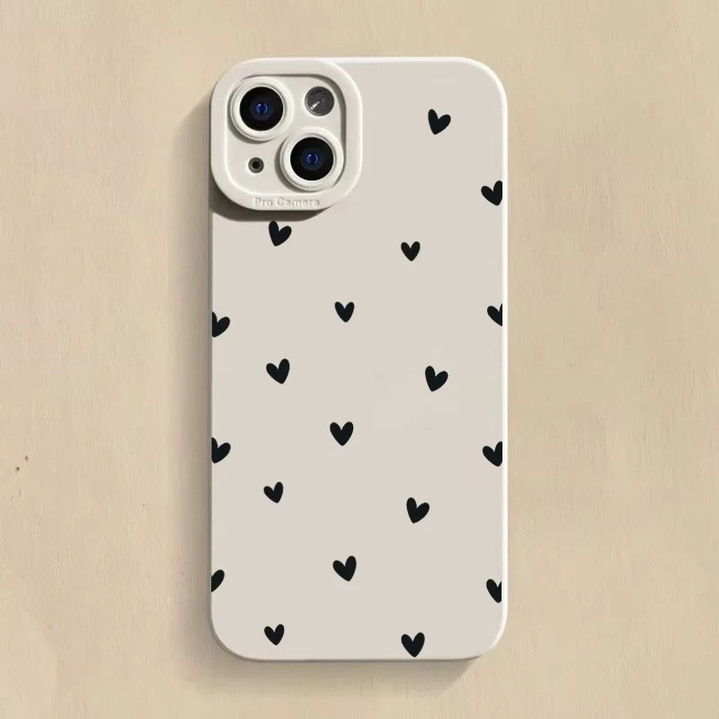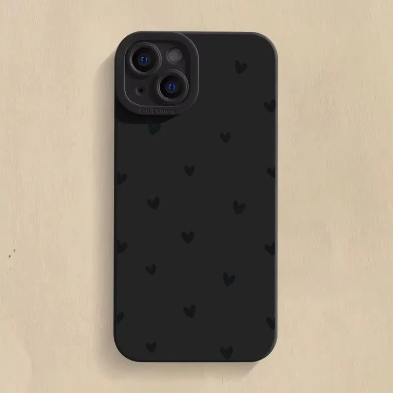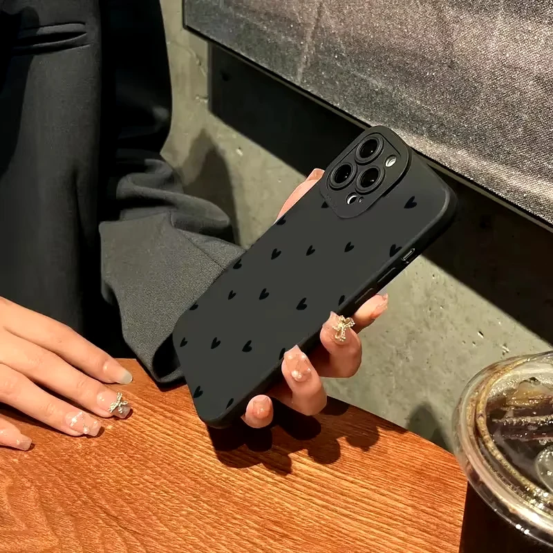 Black Love Heart Silicone Phone Case For Samsung Galaxy A15 A35 A54 A55 S25 S24 S23 Ultra S22 S23 S21 Plus S20 S21 FE Soft Cover