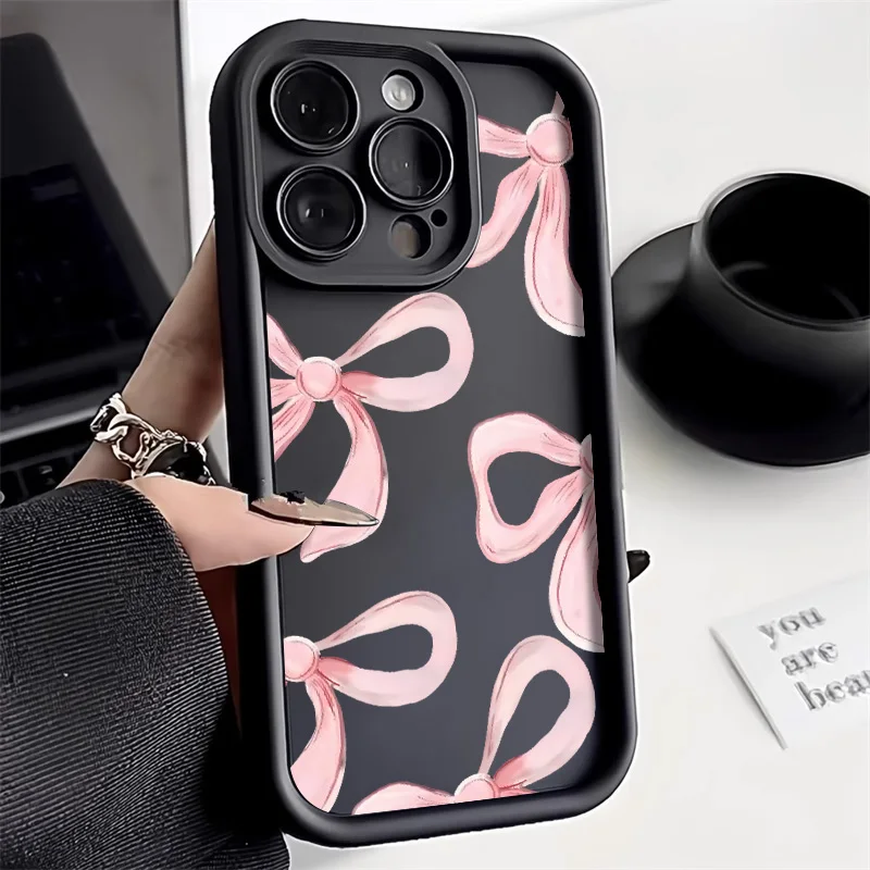 Cute Pink Bowknot Bow Phone Case For iPhone 11 Case Funda iPhone 13 15 16 12 14 Pro Max X XR XS 7 8 Plus SE 2 3 Protective Cover