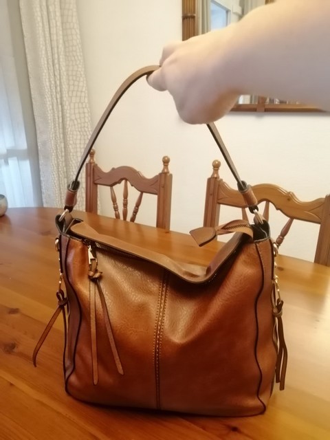At last I made a good day-to-day bag, it is big with several compartments inside and has 3 pockets outside, I like it to be possible Shoulder comfortably and that can also be worn as a shoulder bag, it looks like skin is that it even smells like skin, I would love that this wine color would be Lovely