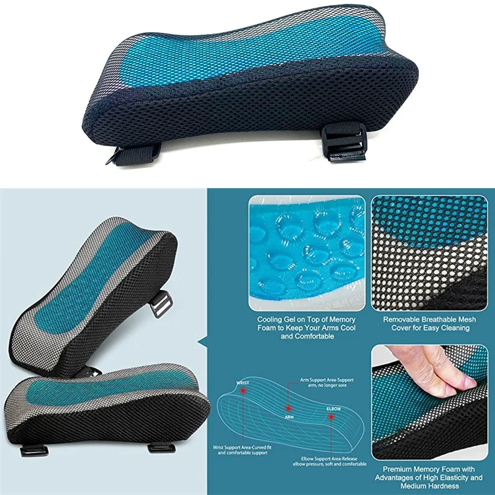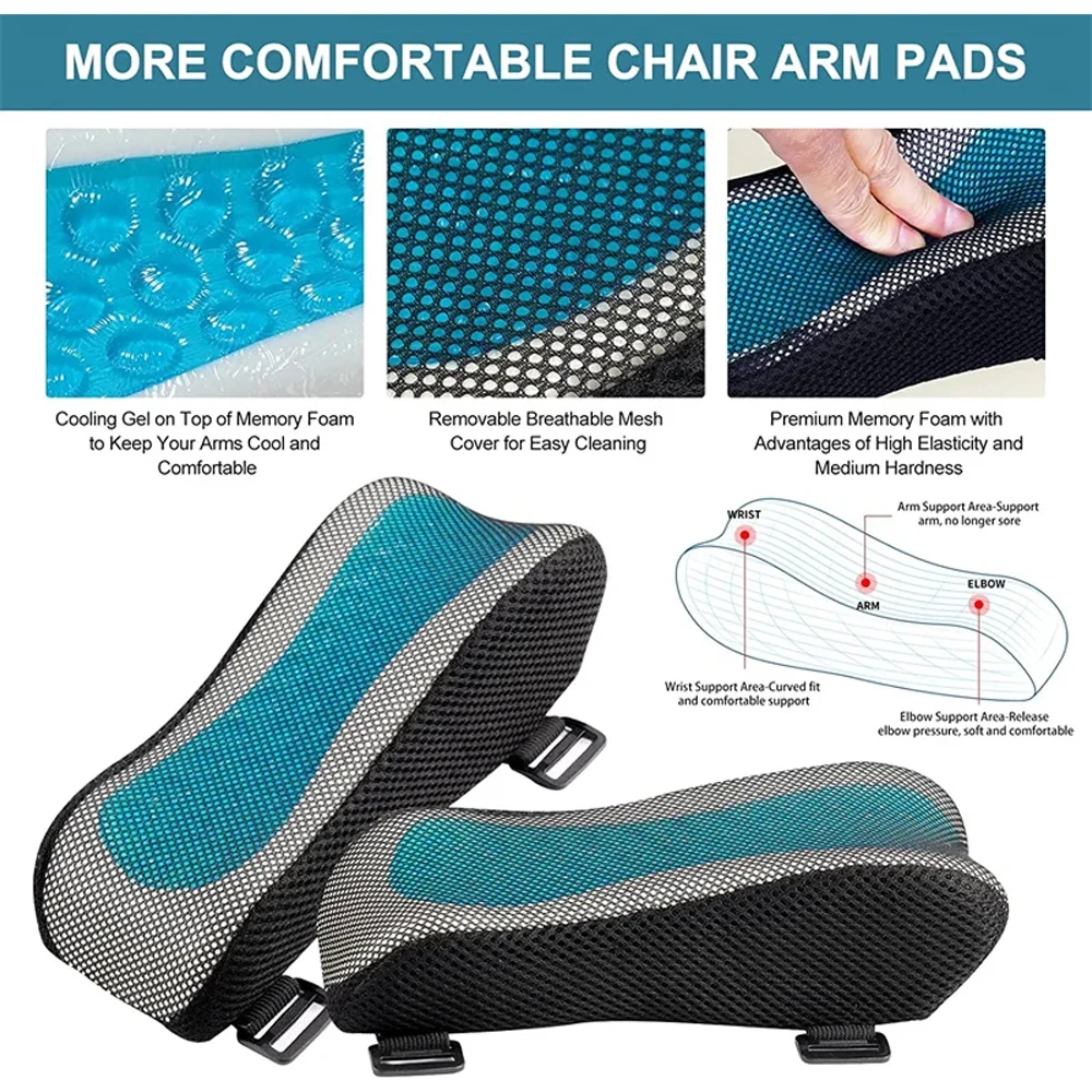 1. 【Premium Memory Foam with Cooling Gel Pad Top】 — The inner core of office chair arm pads is made of 100 percent pure memory foam with moderate hardness which provides a cozy feeling with soft touch. The memory foam cushion includes a cooling gel insert on top to maximize comfort by keeping you cool and absorbing body heat to better adapt to your contours.