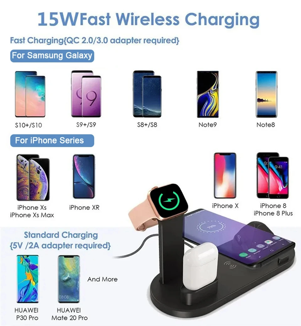 Equipped with an FCC certified 30W adapter and USB-A to USB-C charging cable, it only takes about 1 hour to fully charge your device. Our wireless charger stand uses intelligent protection technology to provide temperature control, overvoltage protection, short circuit protection, overcurrent protection to ensure safe and fast charging. Our chargers are certified by Qi, FCC, CE, ROHS, etc. This 7-in-1 charging station for Apple protects your devices from overcharging damage and ensures safe charging!
