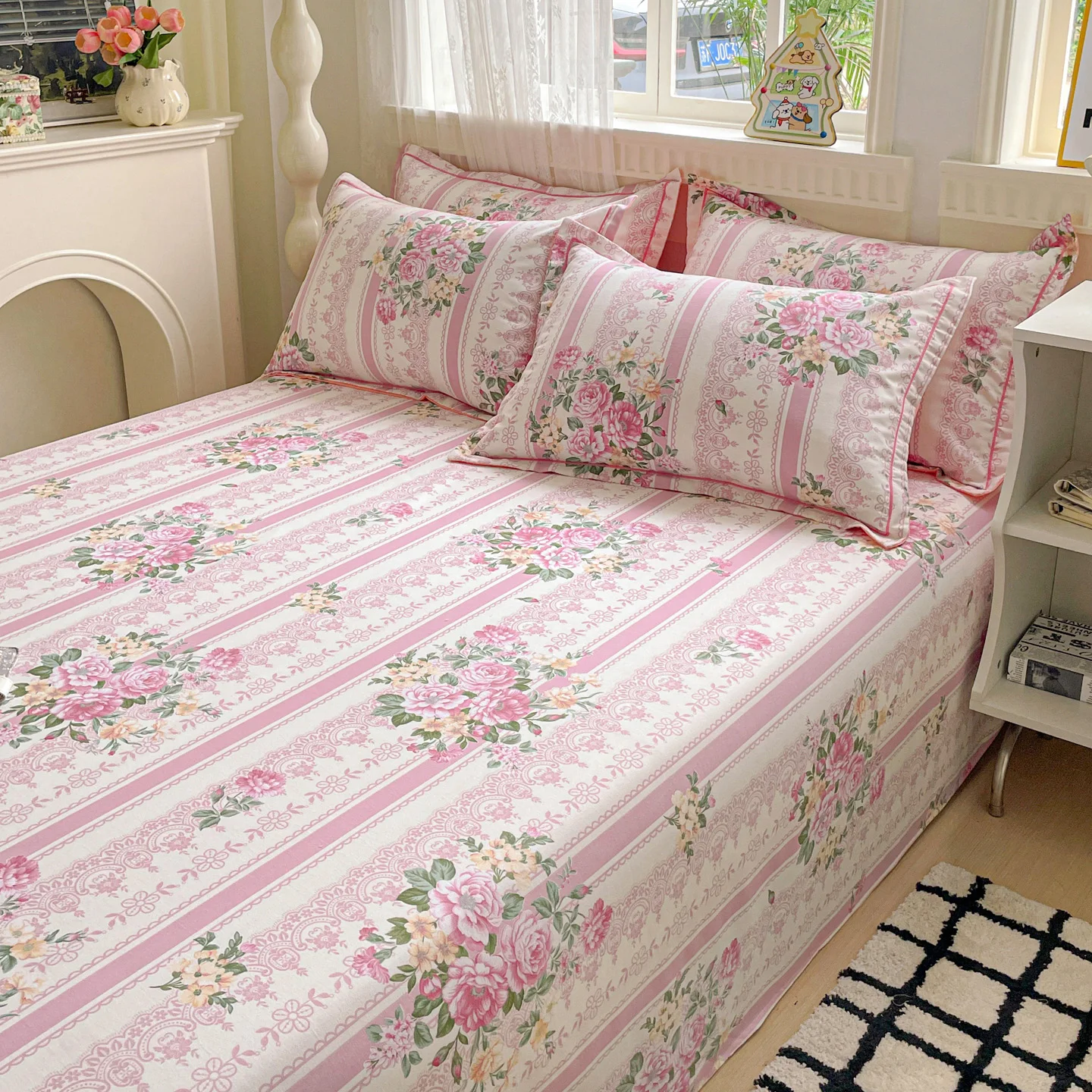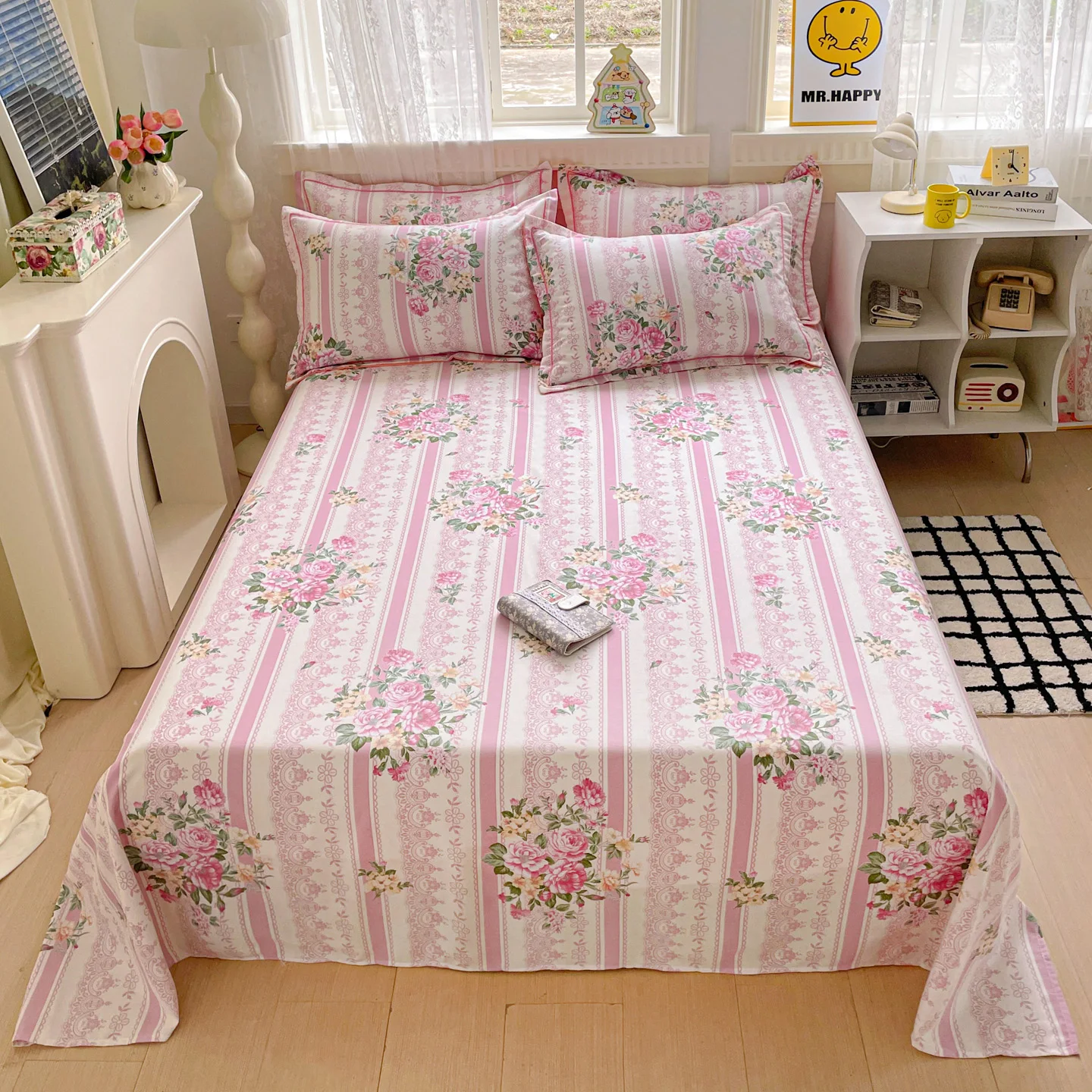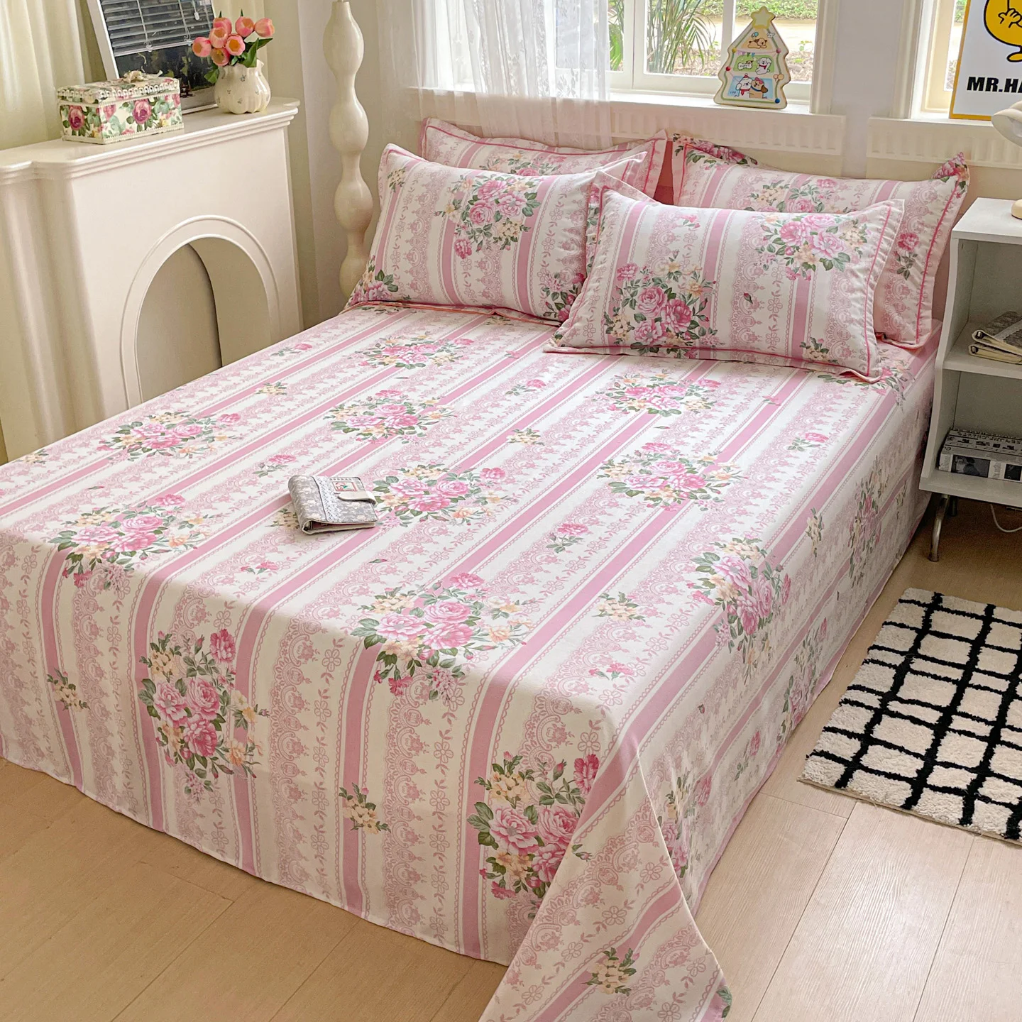 1pc 100% Cotton Bedsheets Floral Style Bed Linen Skin-friendly Flat Sheets Brushed Bed Sheet ropa de cama (No Pillowcase)