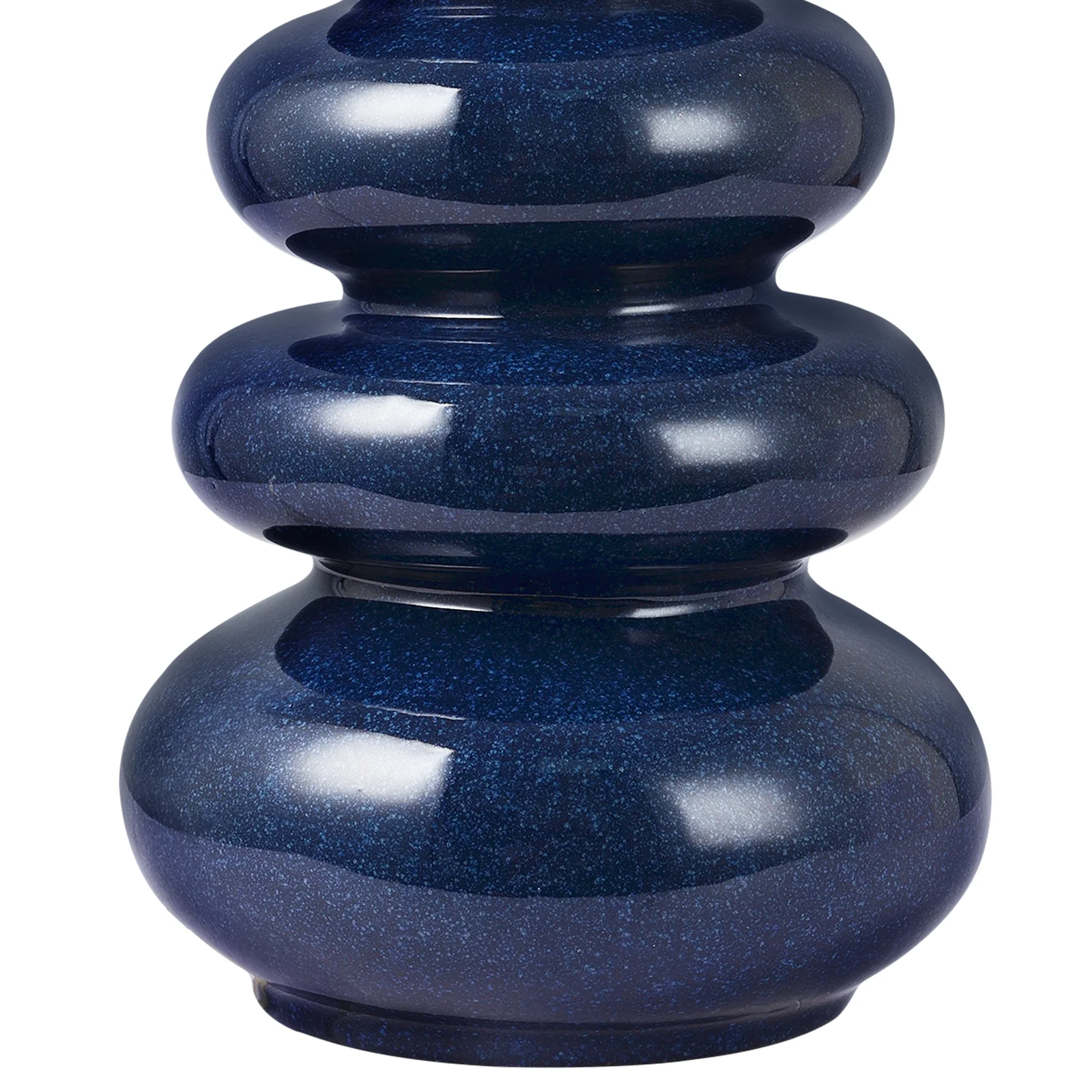 20” Navy Blue Ceramic Table Lamp with White Shade, Handmade Small Pottery Lamp for Living Room, Bedroom, Bedside Table