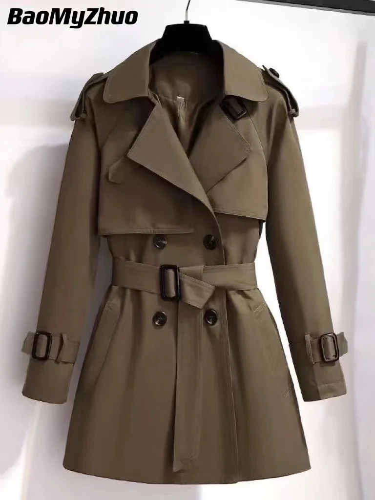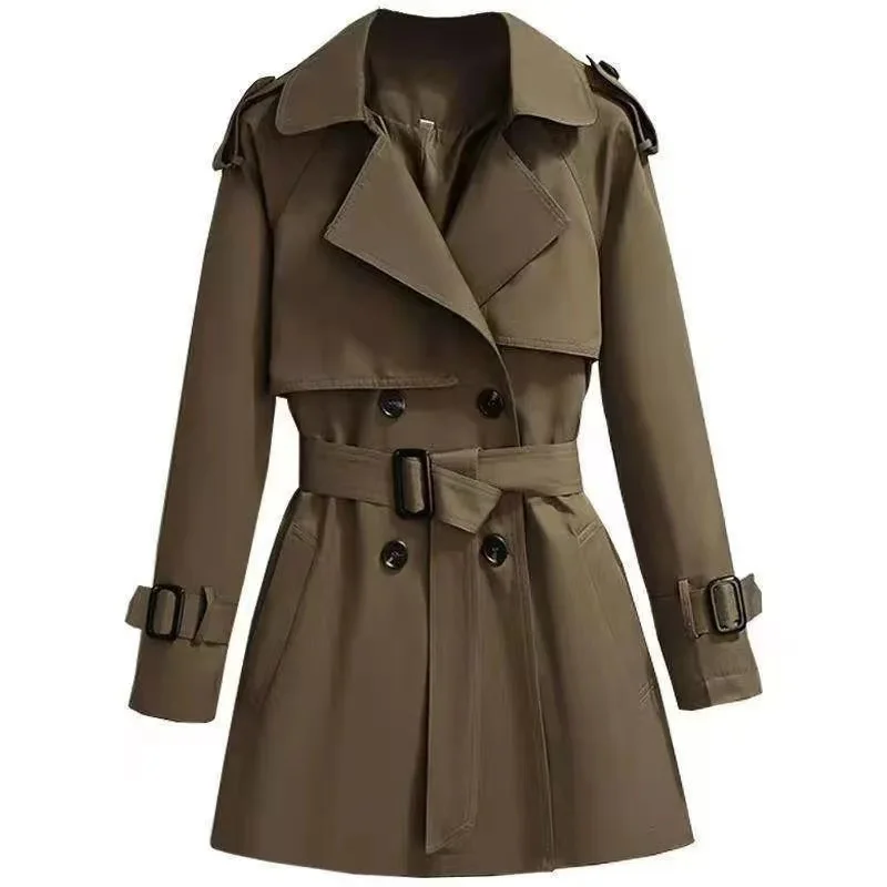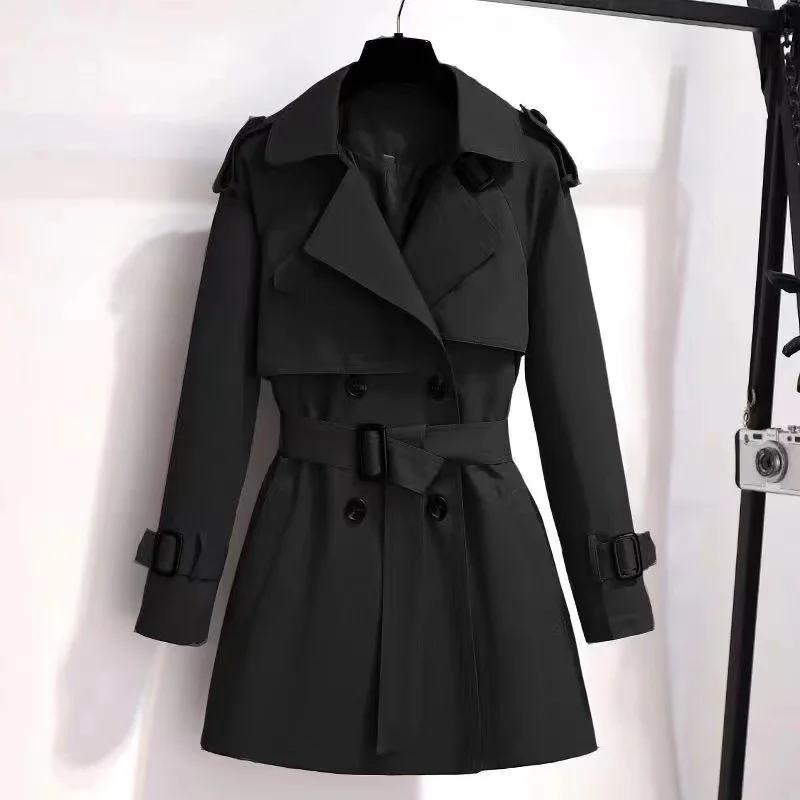 2022 Autumn Winter Elegant Women Double Breasted Solid Trench Coat 100% Cotton Vintage Turn-Down Collar Loose Trench with Belt