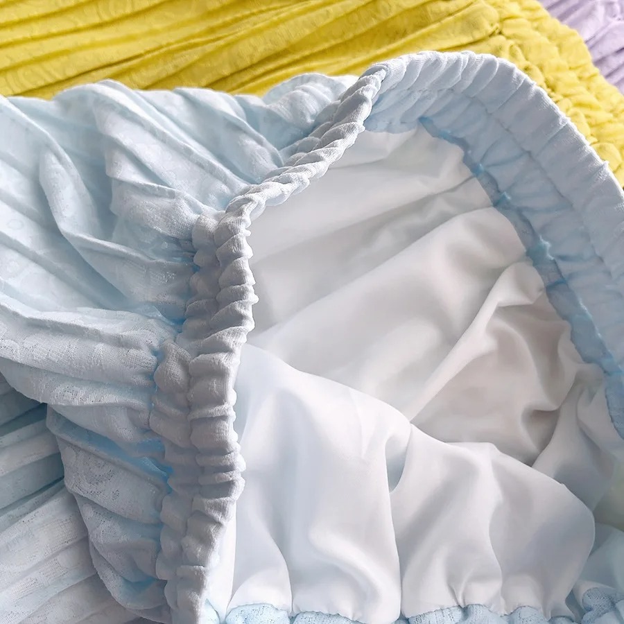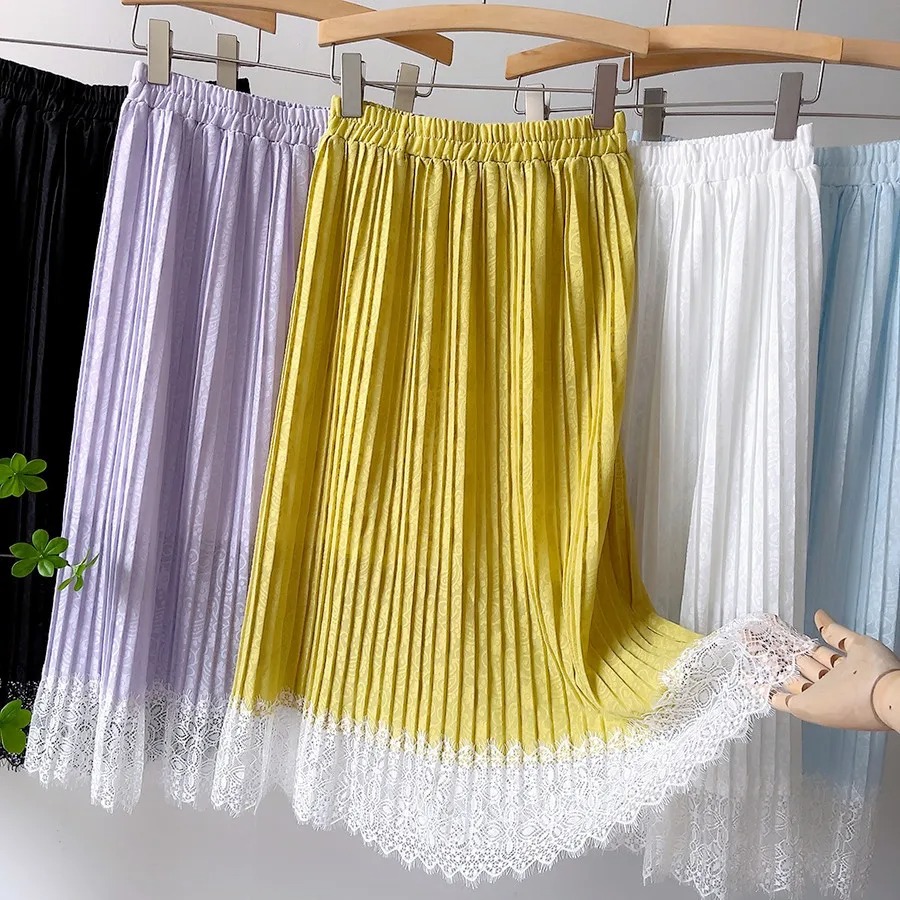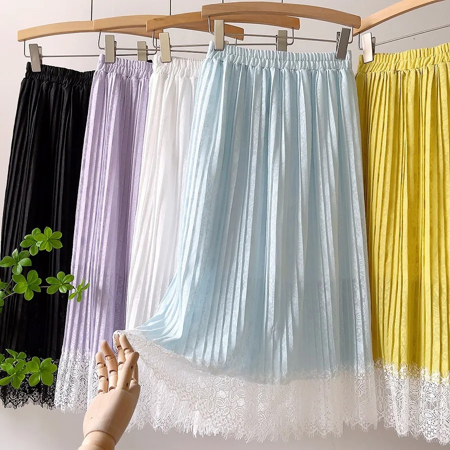 This 2022 spring women’s skirt features a beautiful lace patchwork design combined with soft pleats for a sweet and elegant look. The elastic high-waist fit offers comfort while enhancing the waistline, making it flattering for everyday wear.