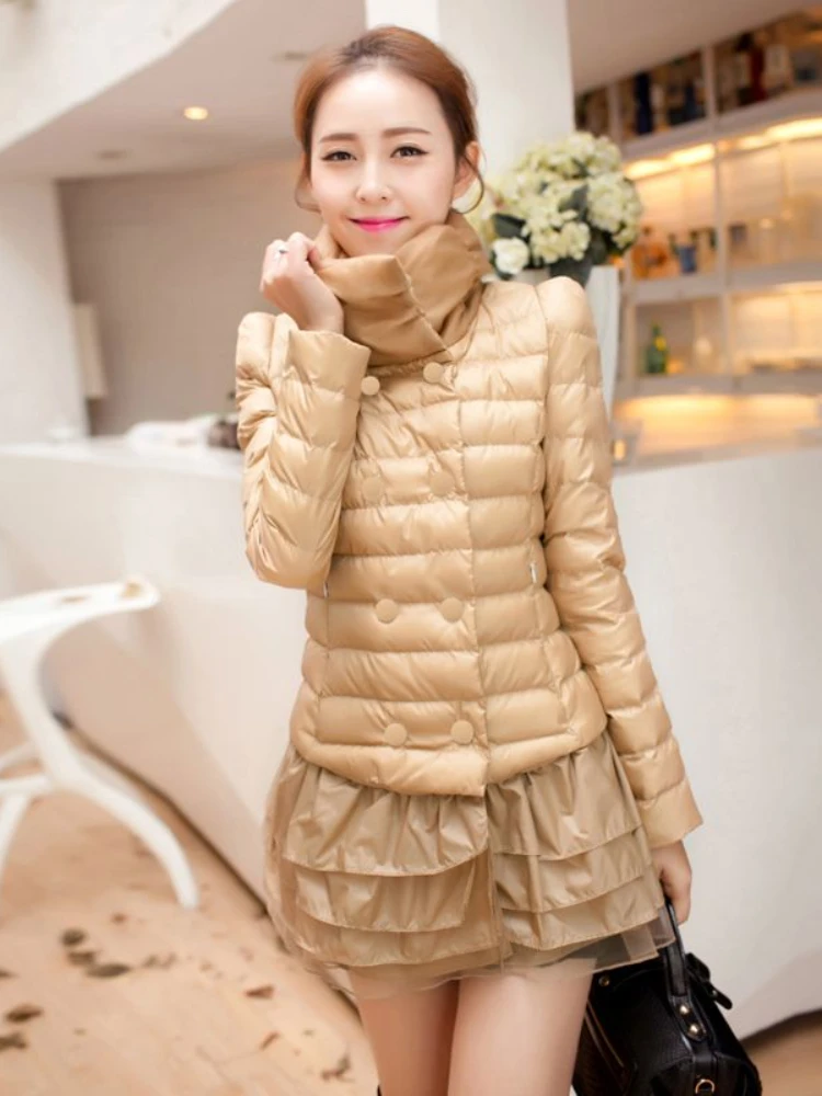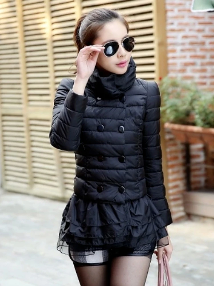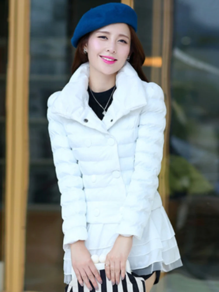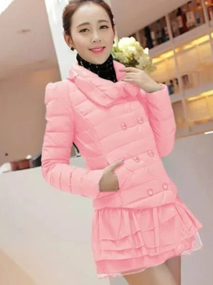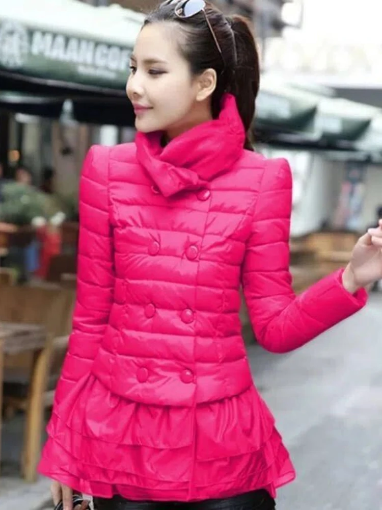 2023 Women’s Winter Warm Stand Collar Parkas Female Slim Splicing Wooden Ear Edges Fashion Cotton Padded Jacket Coat