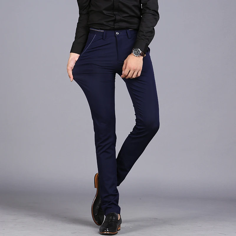 2024 Spring Non-Iron Dress Men Classic Pants Fashion Business Chino Pant Male Stretch Slim Fit Elastic Long Casual Black Trouser