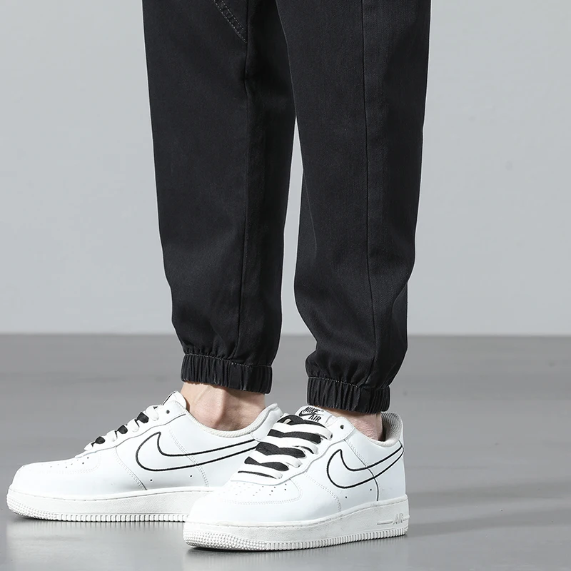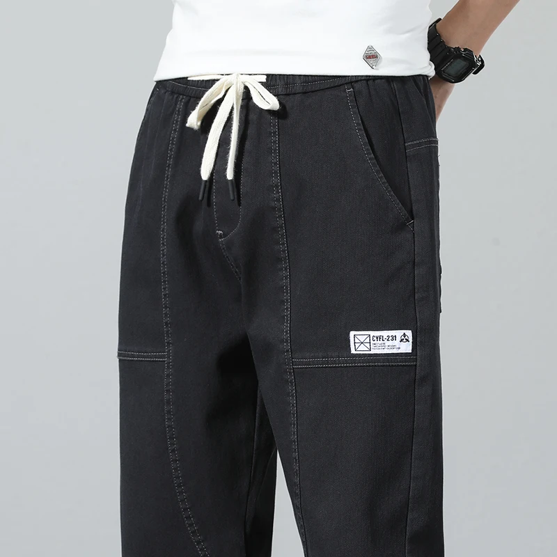 2024 Spring Summer Jeans Men Cotton Thin Beam Feet Harem Pants Elastic Drawstring Waist Light blue Joggers Trousers Male 28-38