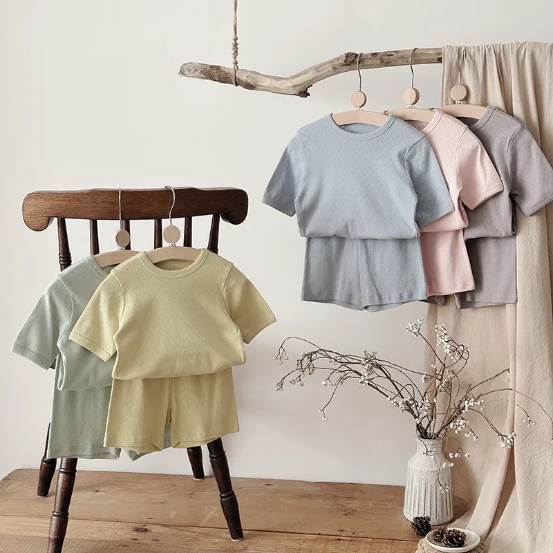 2025 A – Class Soft Cotton Solid Color Ribbed Home Pajamas Set for 0 – 4 Years Ins Style Breathable Boys Girl Home Wear Suit