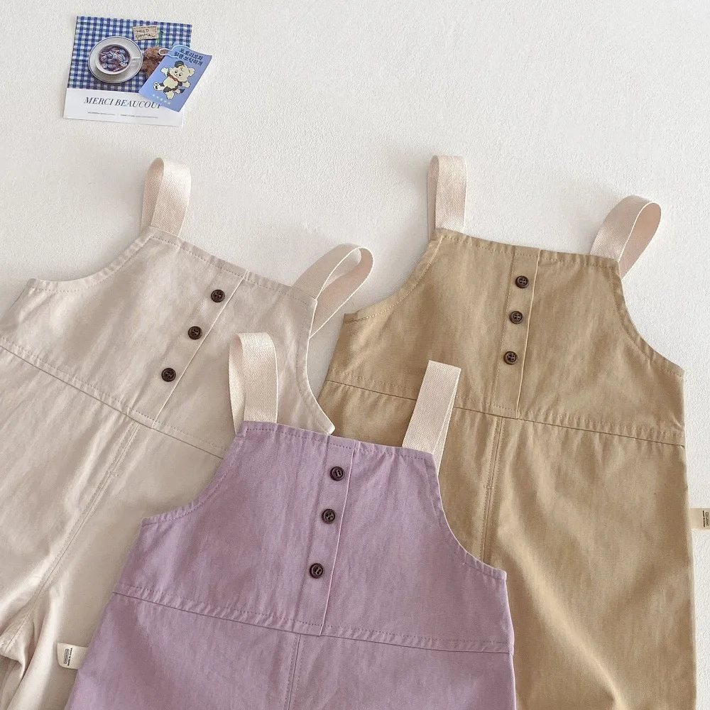 2025 New Kids Overalls 0-5Years Childrn Boy Girl Solid Color Pocket Jumpsuit Cargo Suspender Pant Fashion Bottom Spring Clothes