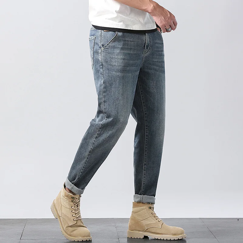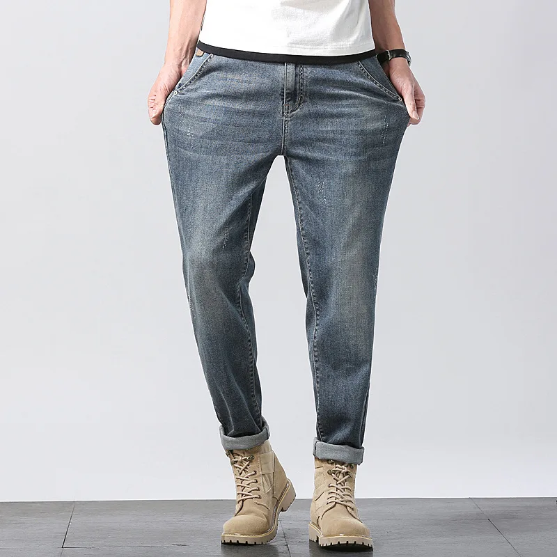 Ankle Length Jeans Men Pencil Pants Harem Soft Spring Summer Fashion Plus Size 42 46 Male Grande Denim Cowboy Elastic Trousers