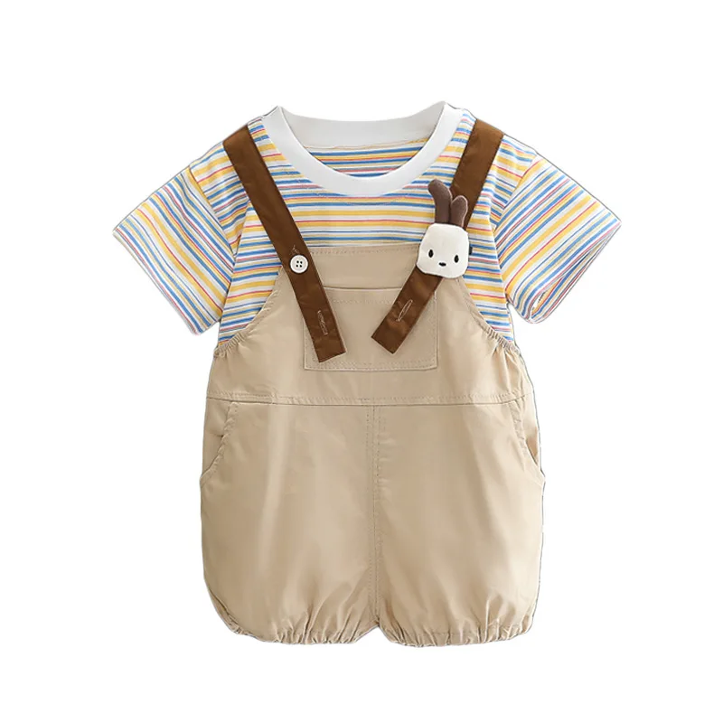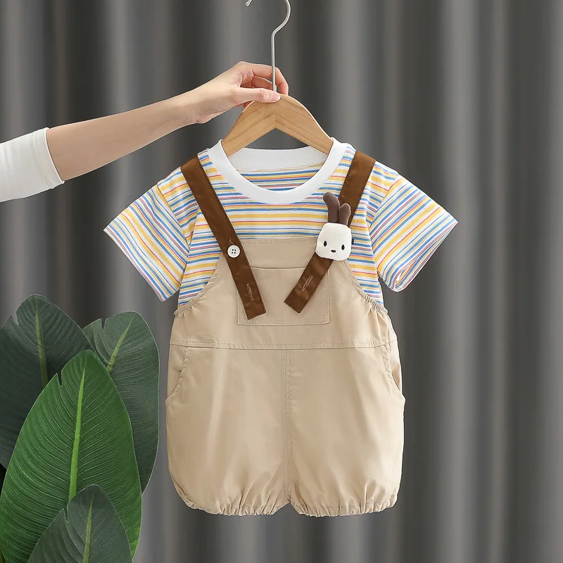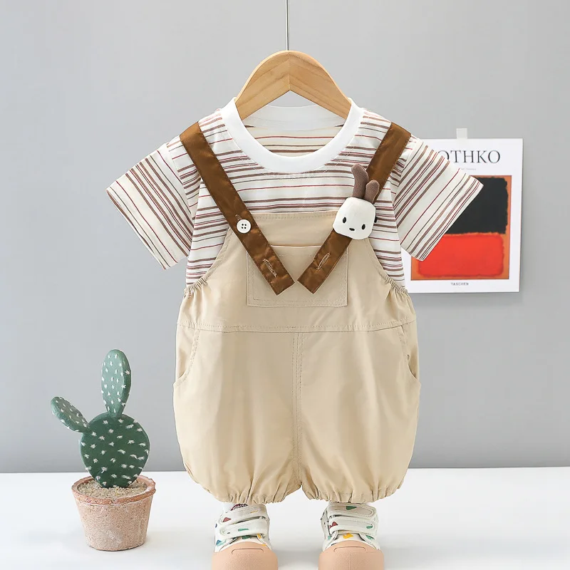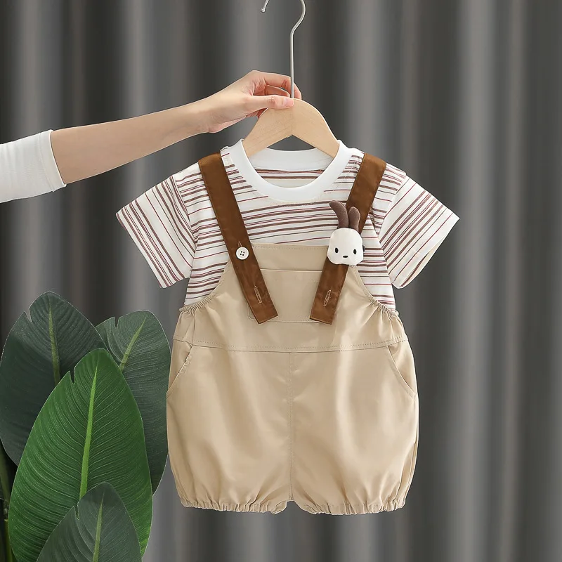 Boys’ summer short sleeved set 2025 new casual baby overalls stylish children’s summer thin two-piece set