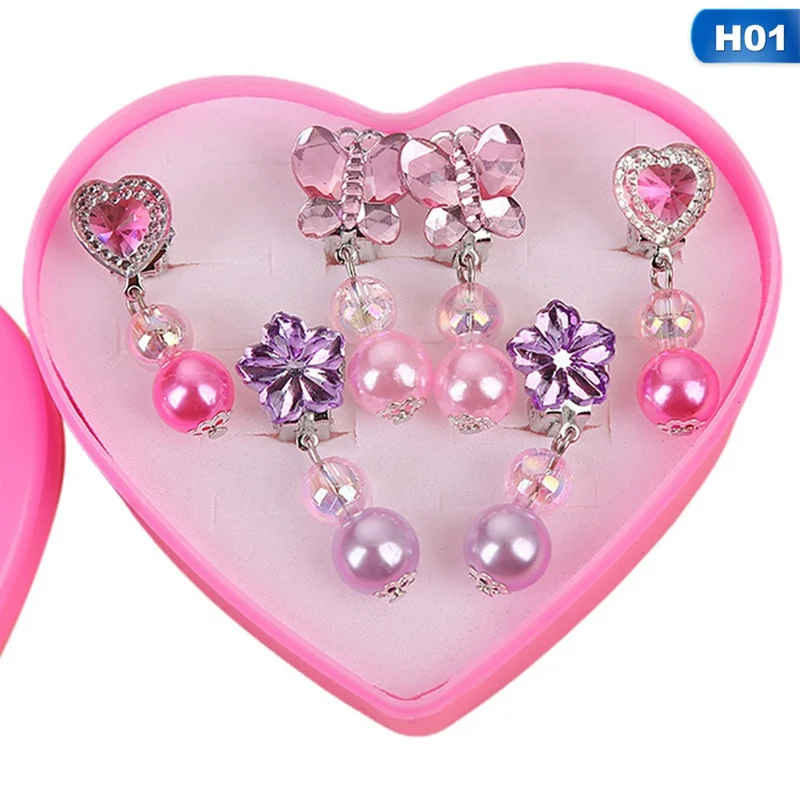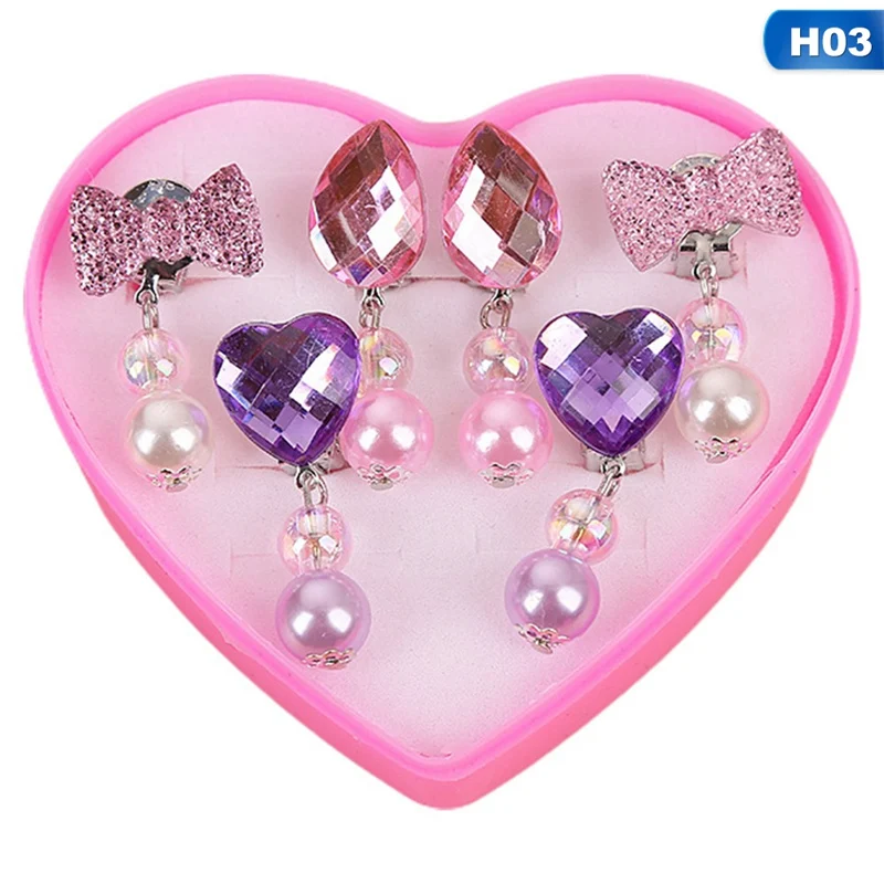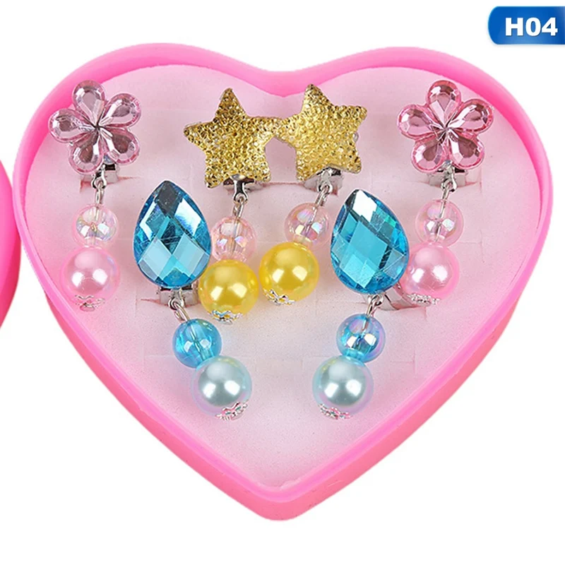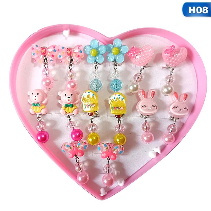 Cartoon Heart/Flower Lovely Korean Style Baby Ear Clips Set Girls Rings Star Bow Ear Clips Kids Clip Earrings Gifts for Girls