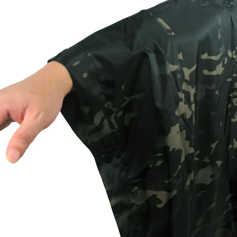 CP Black Tactics Portable Camouflage Waterproof Rain Protection Cape Adult Poncho Raincoat Cloak Travel Rainproof Motorcycle Man