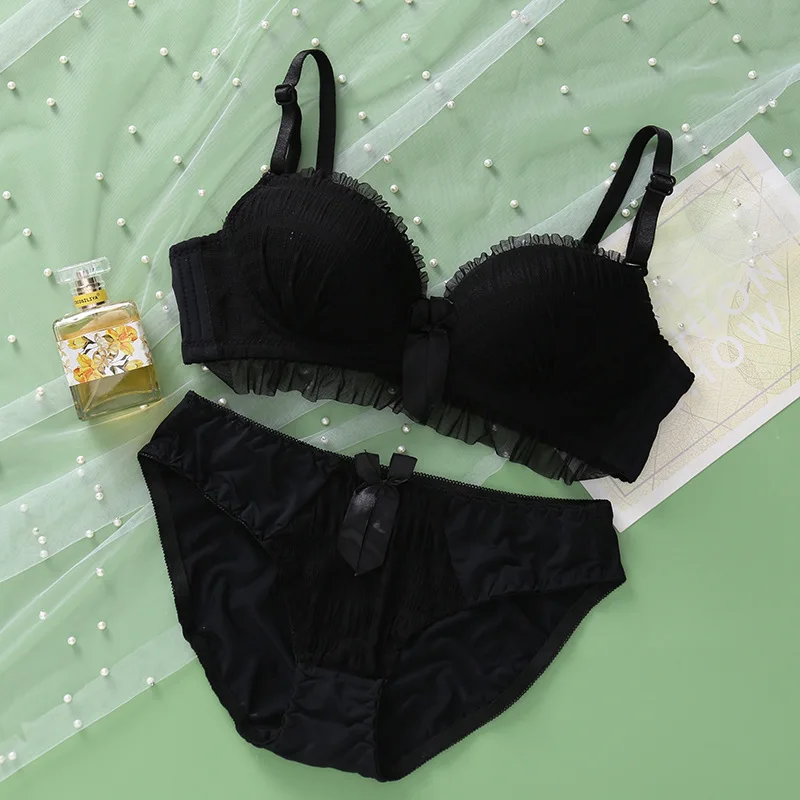 Cute Japanese Women Lace Bra Sets Knot Underwear Backless Young Girls Unline Lingerie Floral Soft Comfortable Bra & Brief Sets