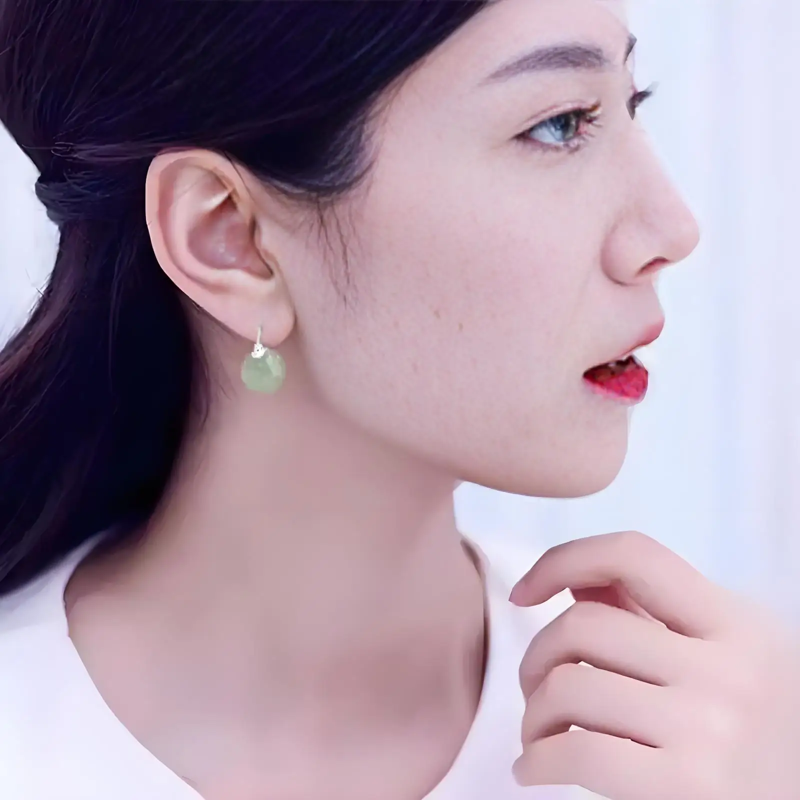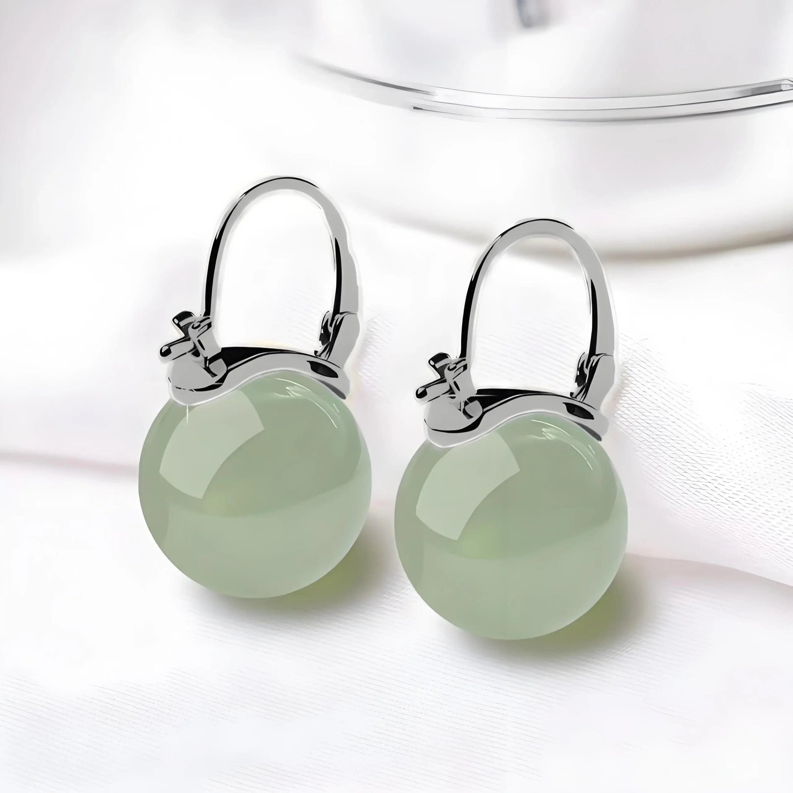 Elegant Jade Drop Earrings for Women – Hypoallergenic Ear Clips with Premium Green Gemstone