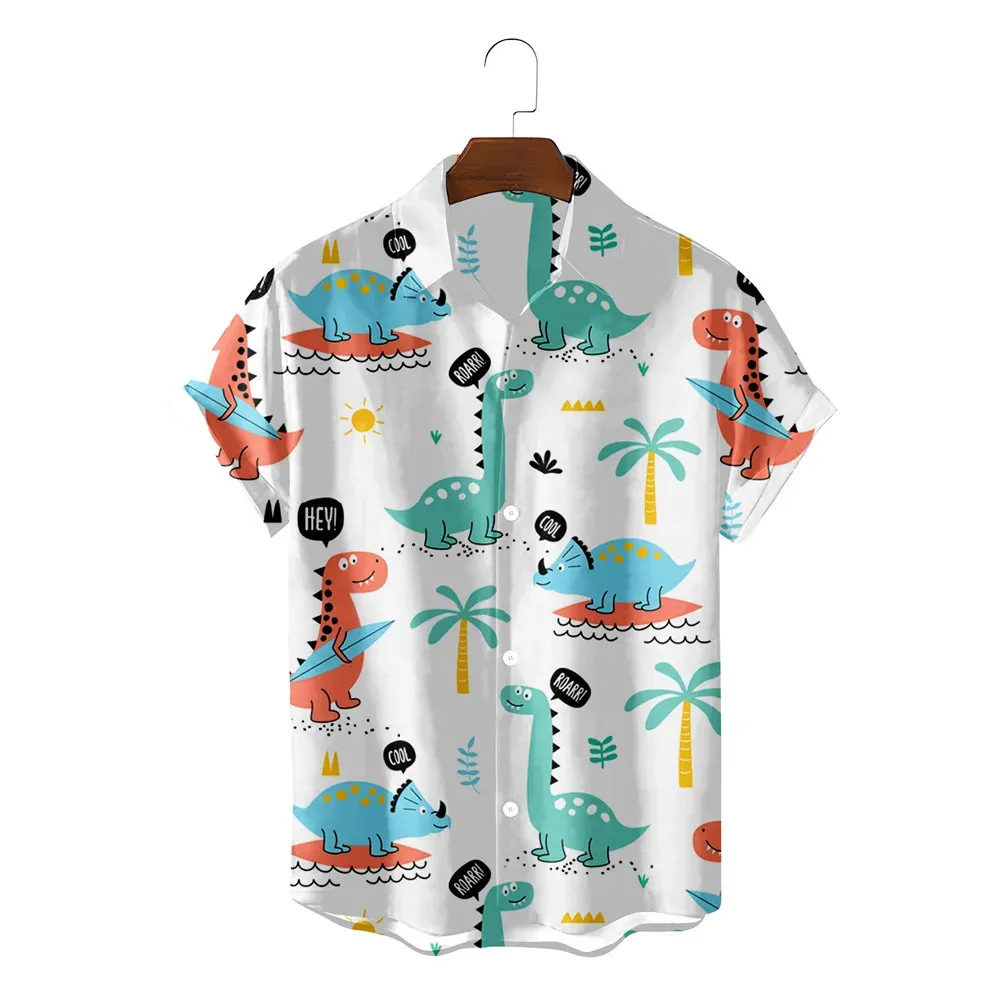 Fashion Hawaiian Cute Funny Dionsaur 3d Pattern Shirts Boys Girls Clothing Summer Beach Short Sleeve Blouse Kids Lapel Blouse