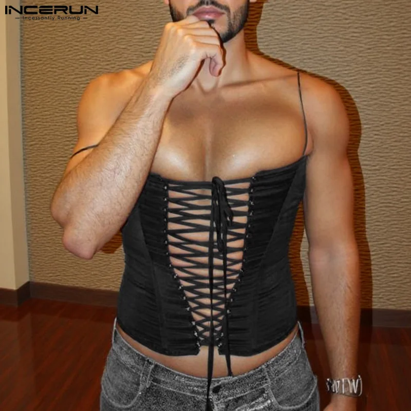 Fashion Stylish Tops INCERUN Men Tight Fitting Drawstring Design Vests Casual Clubwear Male Sleeveless Tank Tops S-5XL 2025