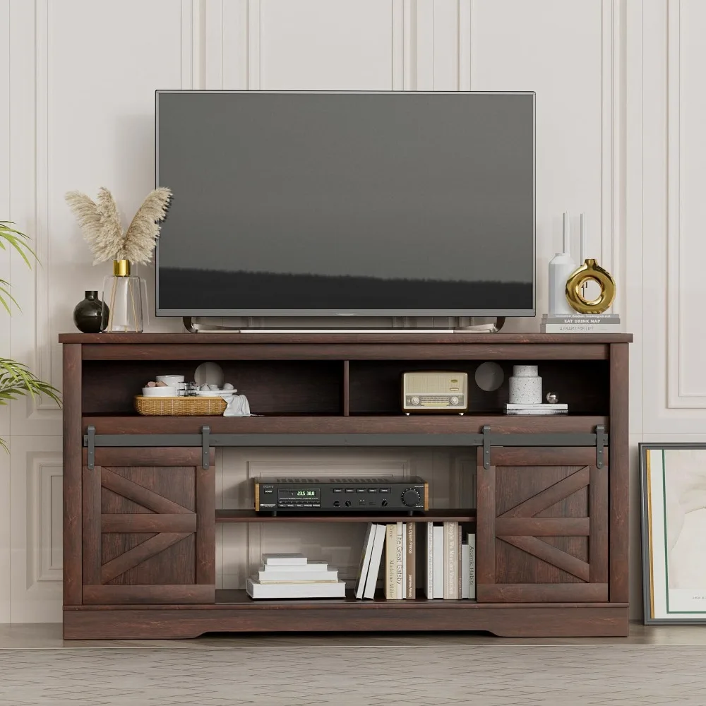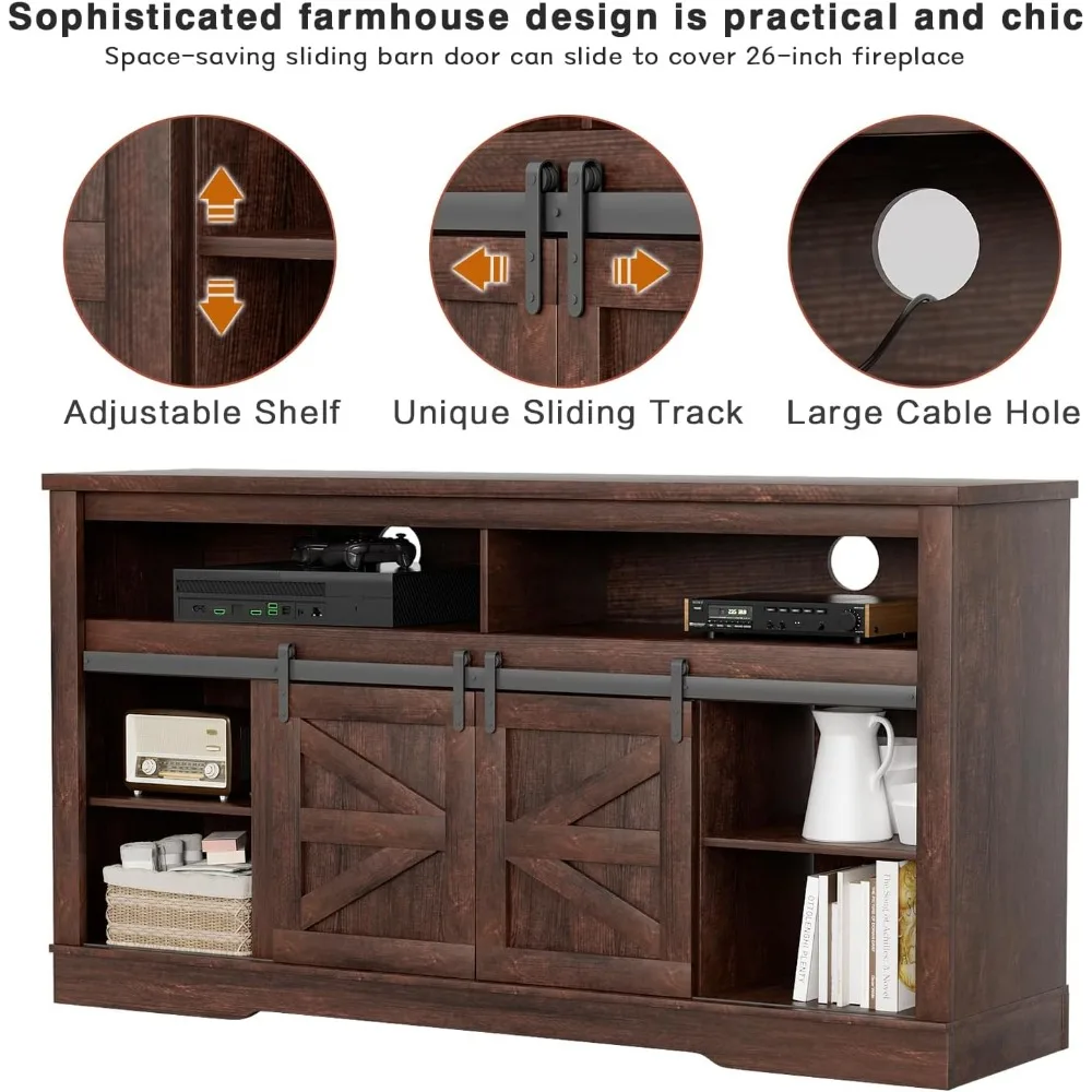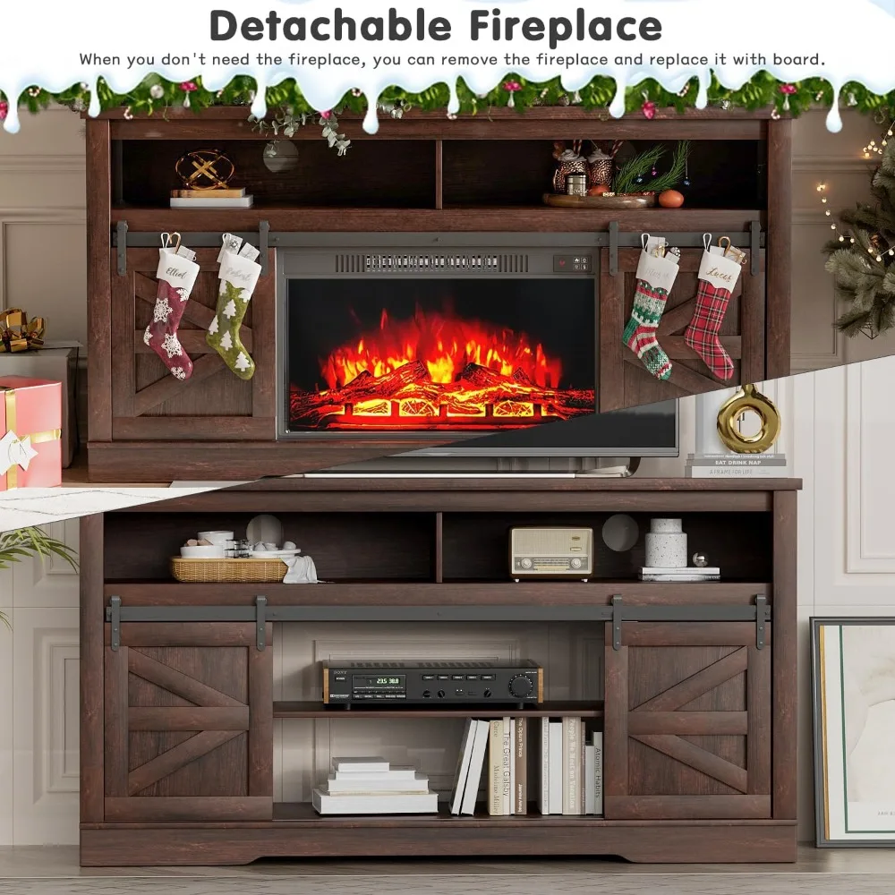 Fireplace TV Stand for Television up to 65+ Inch with Storage and Farmhouse Sliding Barn Doors, Entertainment Center with Cabin