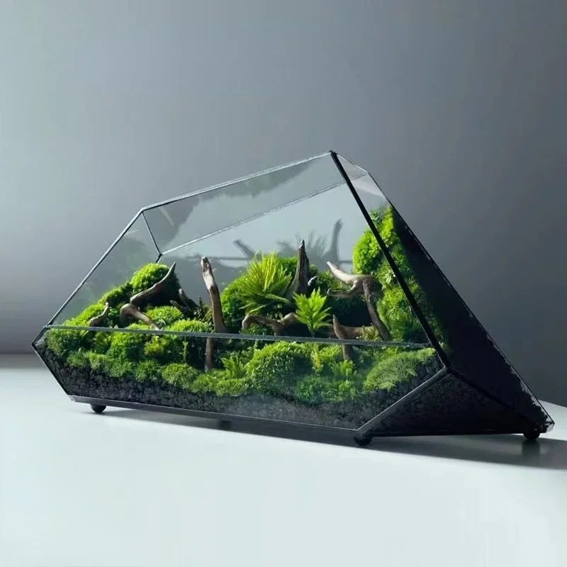 Glass Vase Micro Landscape Planter Rainforest Tank Moss Eco Vase Home Decoration Geometric Glass Flower Room Hydroponic Vase