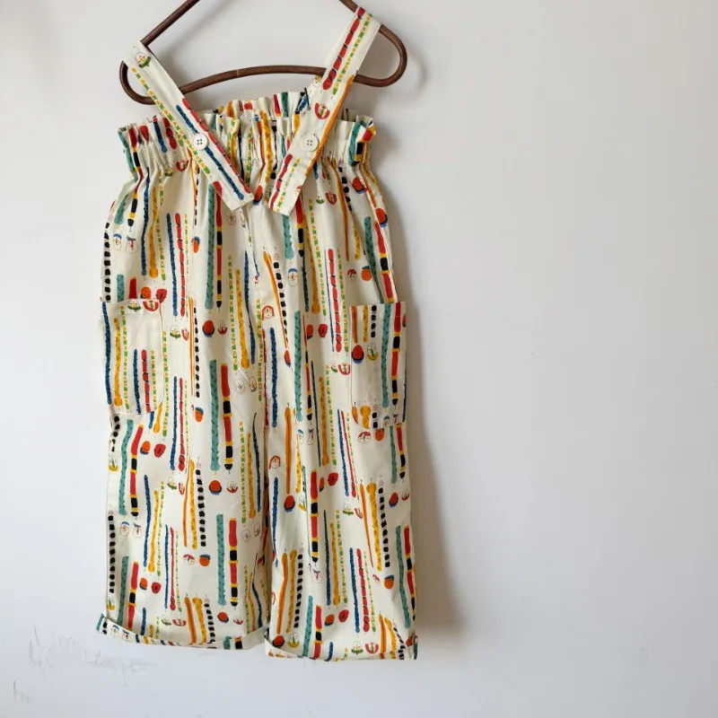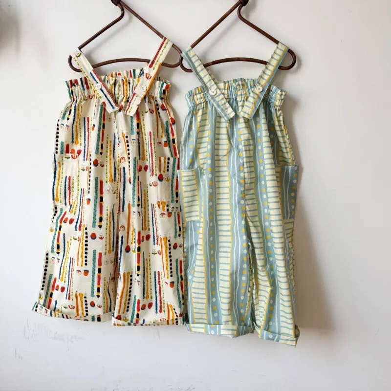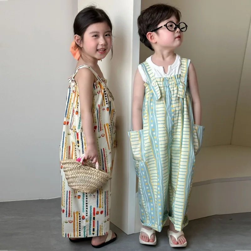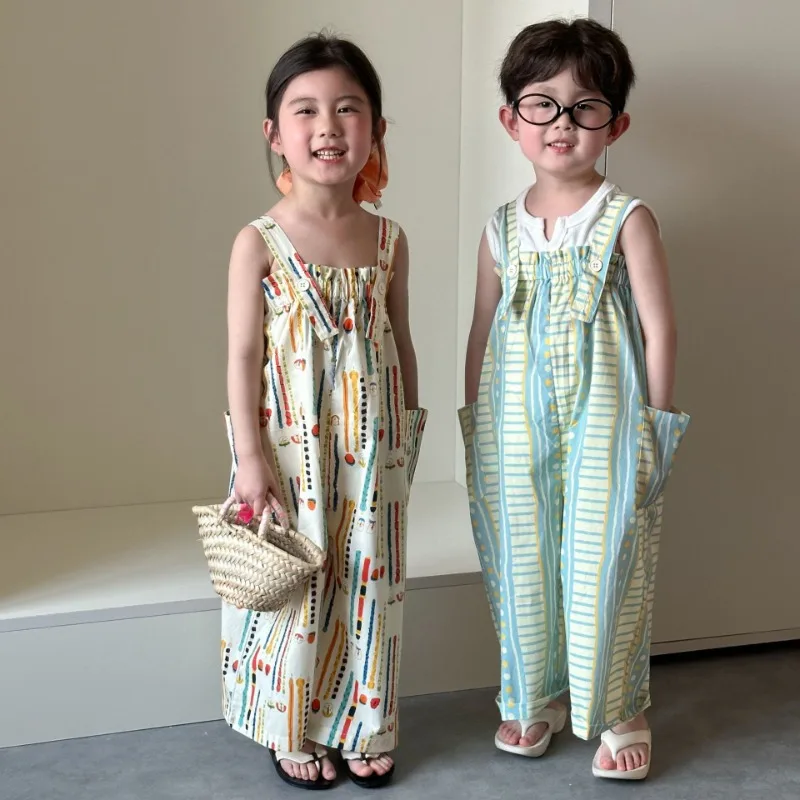Kids Overalls Vacation Style Girls Big Pockets Straps Wide Leg Pants 2025 Spring Summer Boys Loose Thin Style Casual Trousers