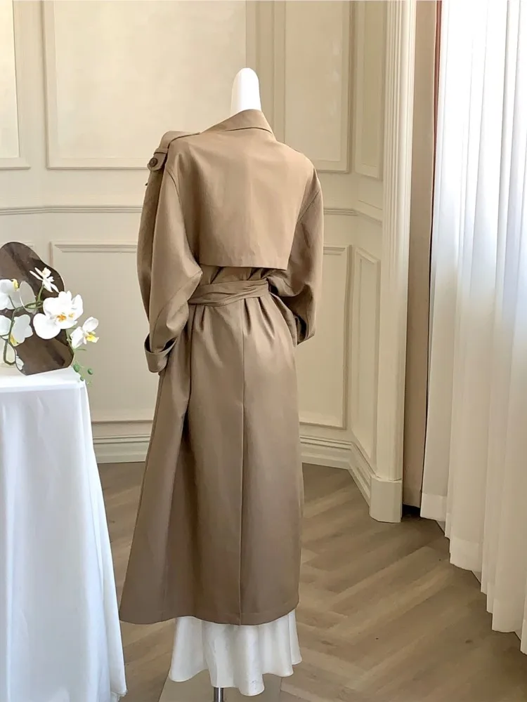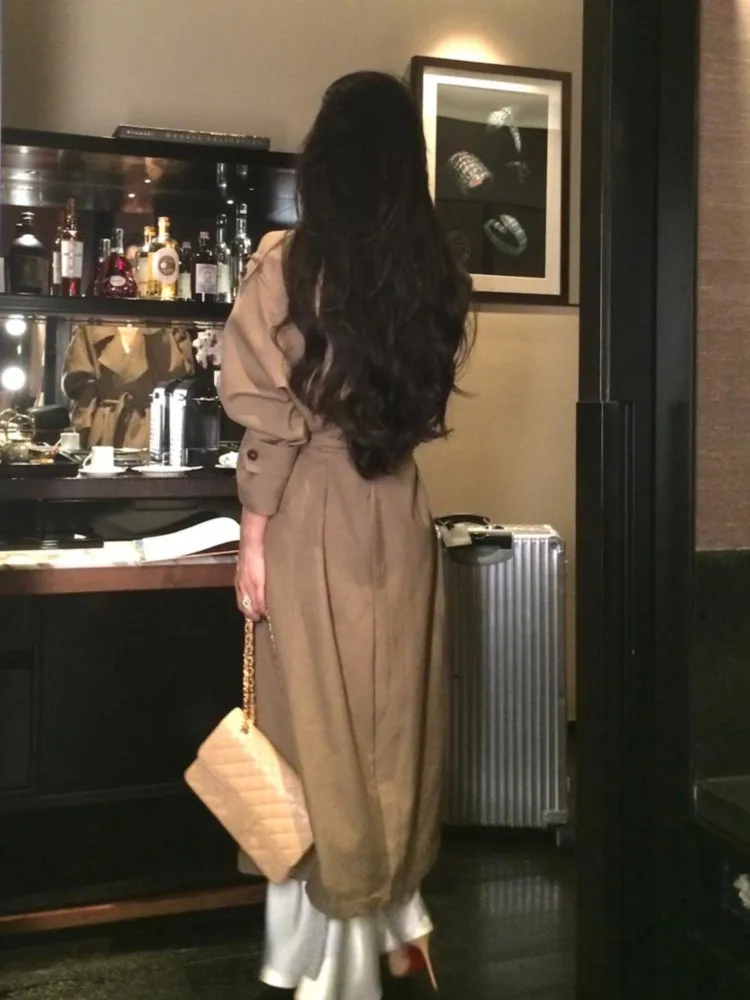 Korea Style Turn-Down Collar Long Trench With Belt Women Solid Fashion Single Breasted Slim Coat Female Elegant Clothes Autumn