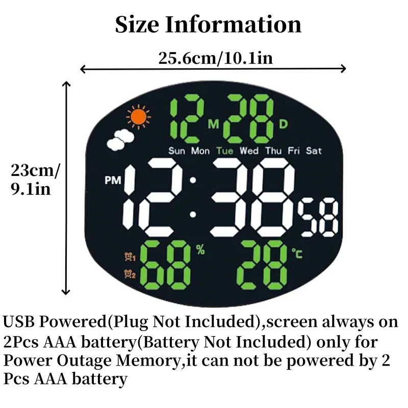 Large-screen LED clock wall clock temperature and humidity date Sunday mode electronic wall clock when weather is displayed