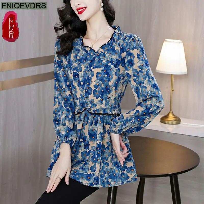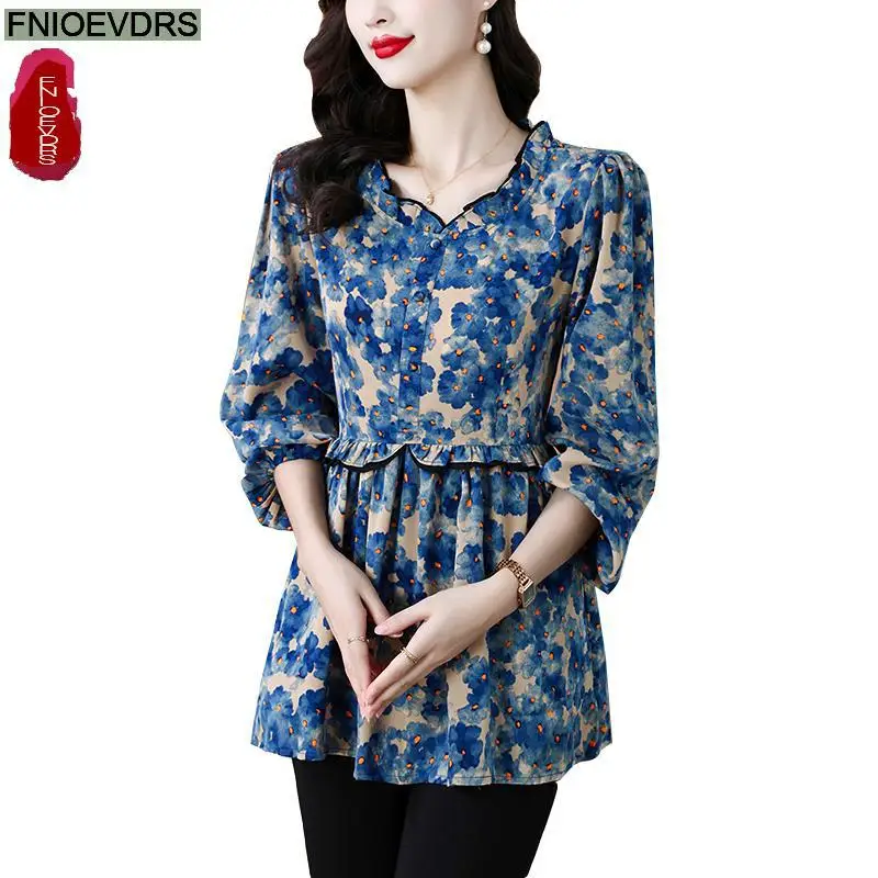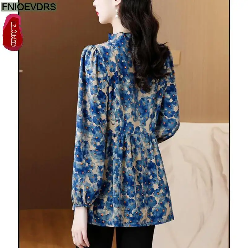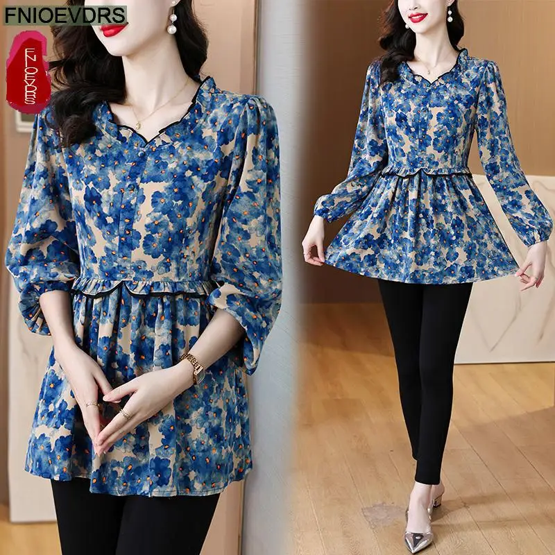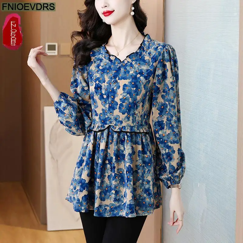 Loose Clothes Women 2024 Autumn Elegant Office Lady Button Basic Shirts Casual Retro Vintage Ruffles Tunic Peplum Tops Blouses