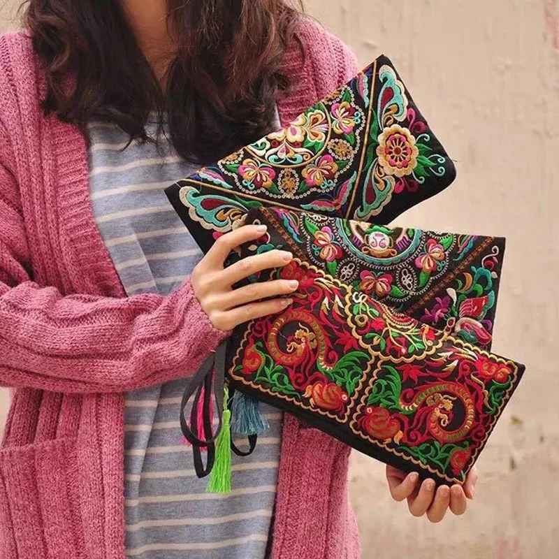 Luxury Design Flowers Clutches Pouch Fashion Women Wallet Wrist Handbag Lady Vintage Envelope Phone Purse Card Holders Pocket