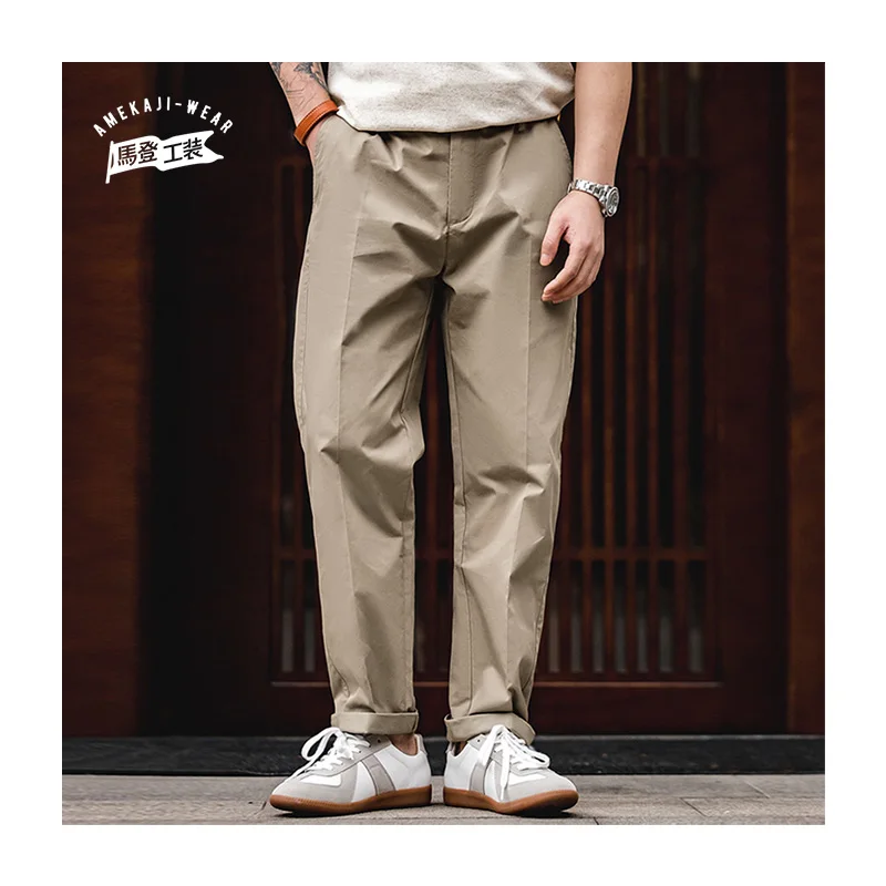 Maden Straight-fit Blazer Trousers for Men Khaki Casual Tapered Pants Elastic Waist Comfortable Pants Autumn Versatile