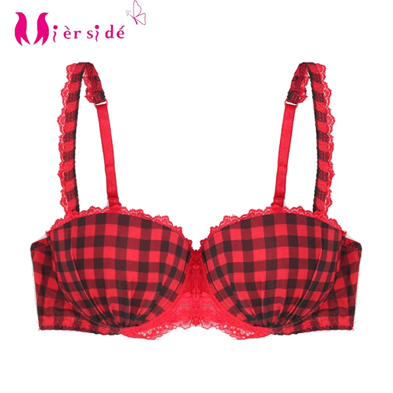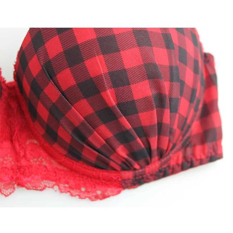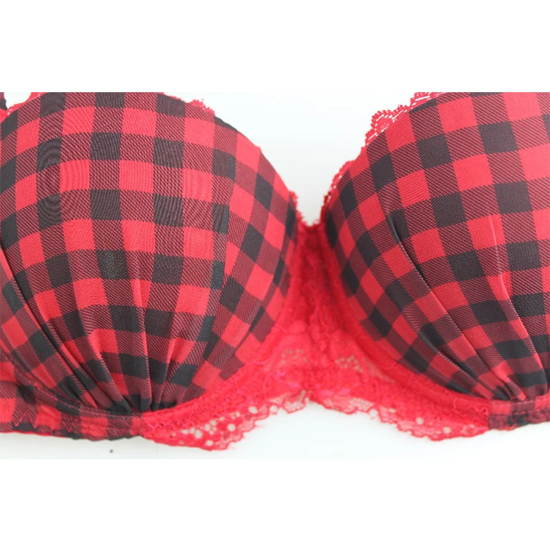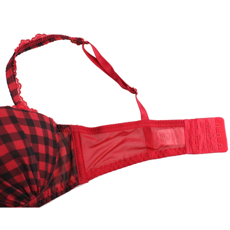 Mierdise Woman Underwear Red Plaid Bra Everyday Fashion Push Up Bra Lingerie