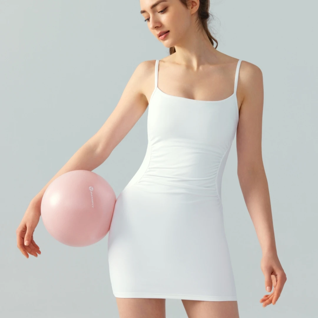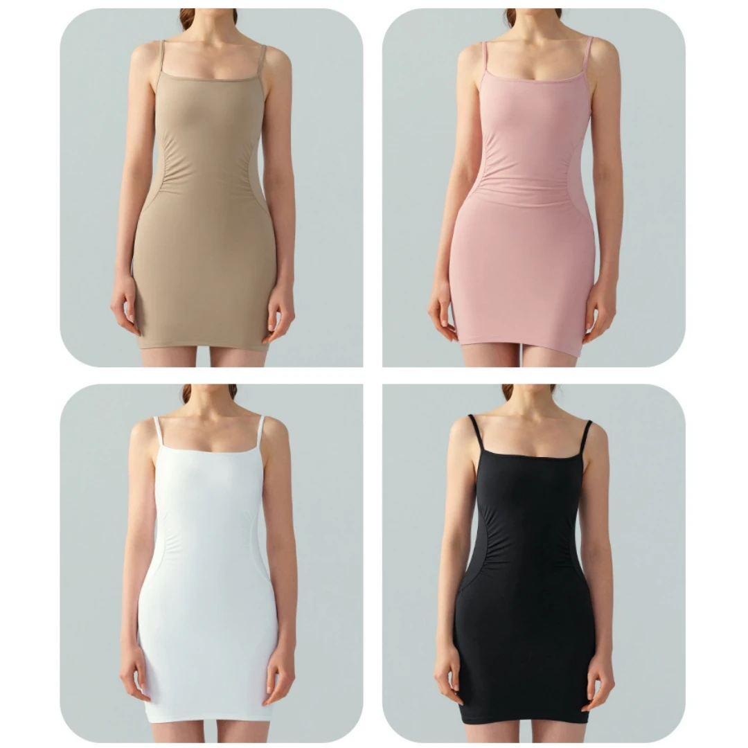 New Solid Color Base Dress Camisole Sports Skirt with Chest Pad Tight and Slim Running Sports Top Fitness Gym Tennis Skirt