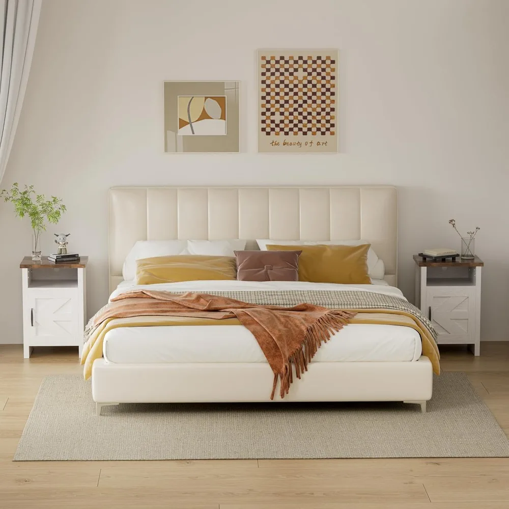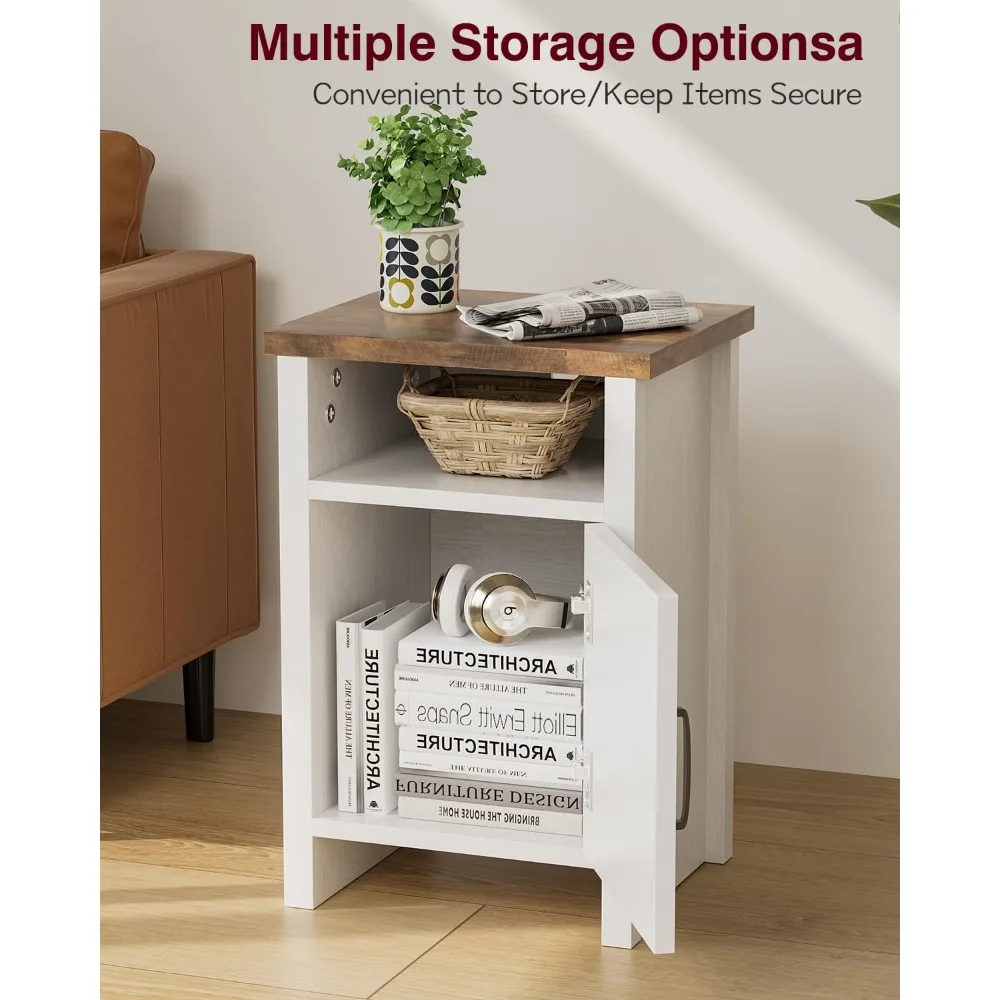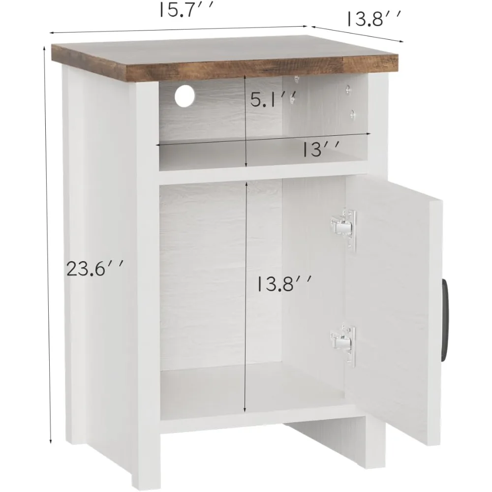 Nightstand Set of 2 with Storage Shelf and Barn Door, Farmhouse Modern Nightstand for Bedroom, Nightstand