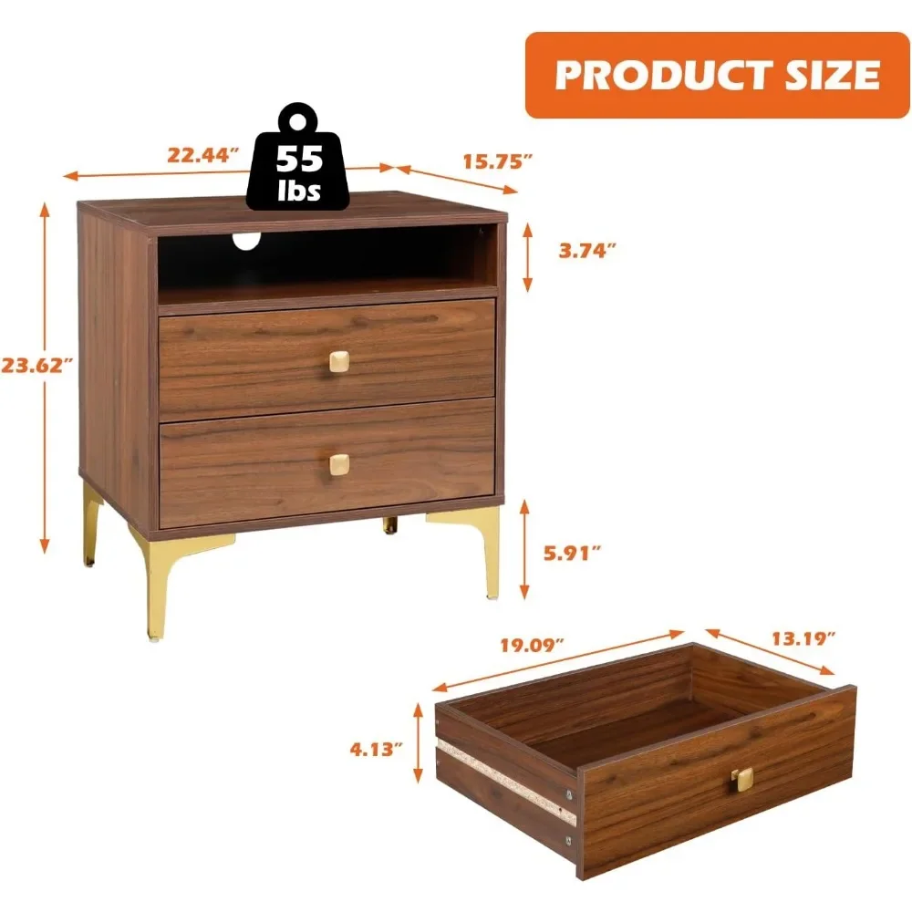 Nightstands Set of 2 with Wireless Charging Function, Wood Night Stands 2 Sets with Drawers and Open Shelf Storage
