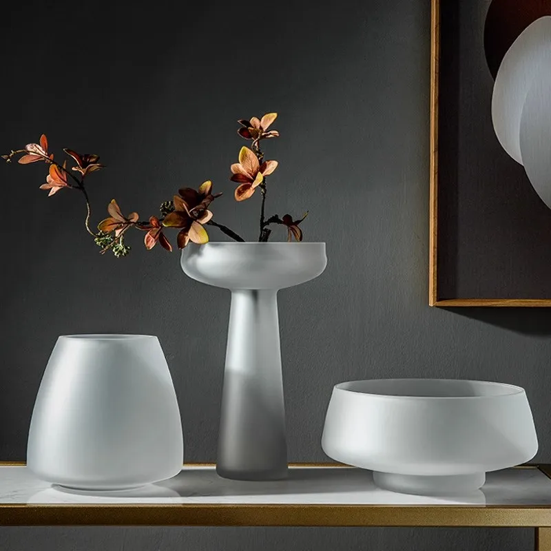 Nordic Light Luxury Home Decor Frosted Glass Vase Living Room Decoration Table Flowers Hydroponic Vase Terrarium Decor