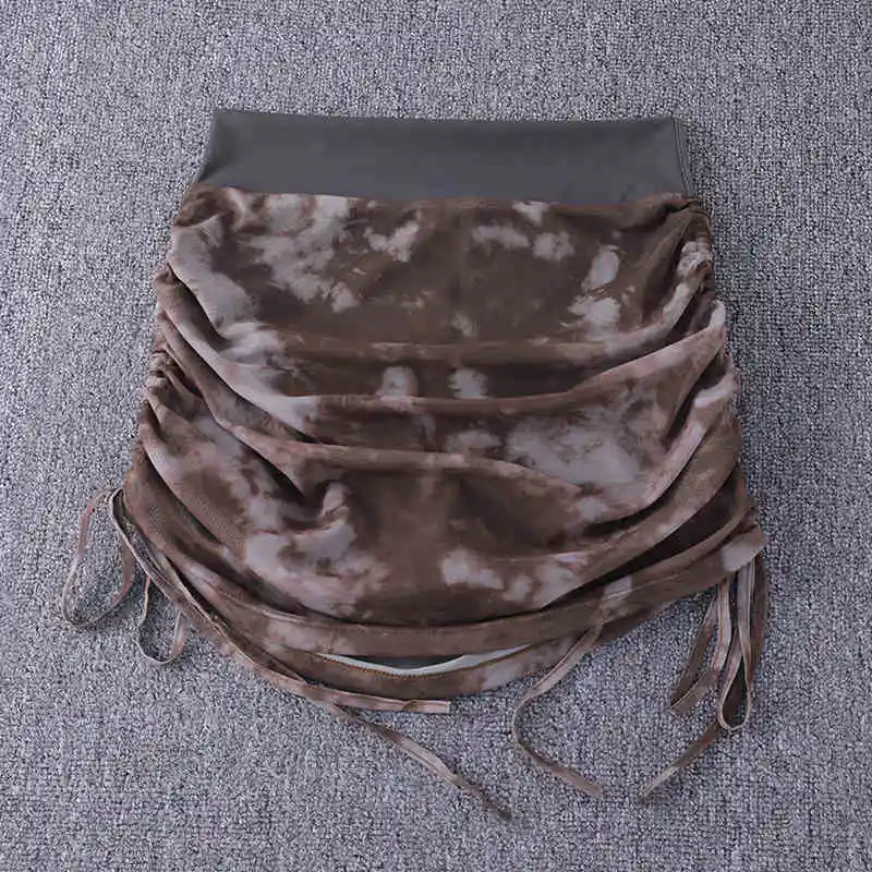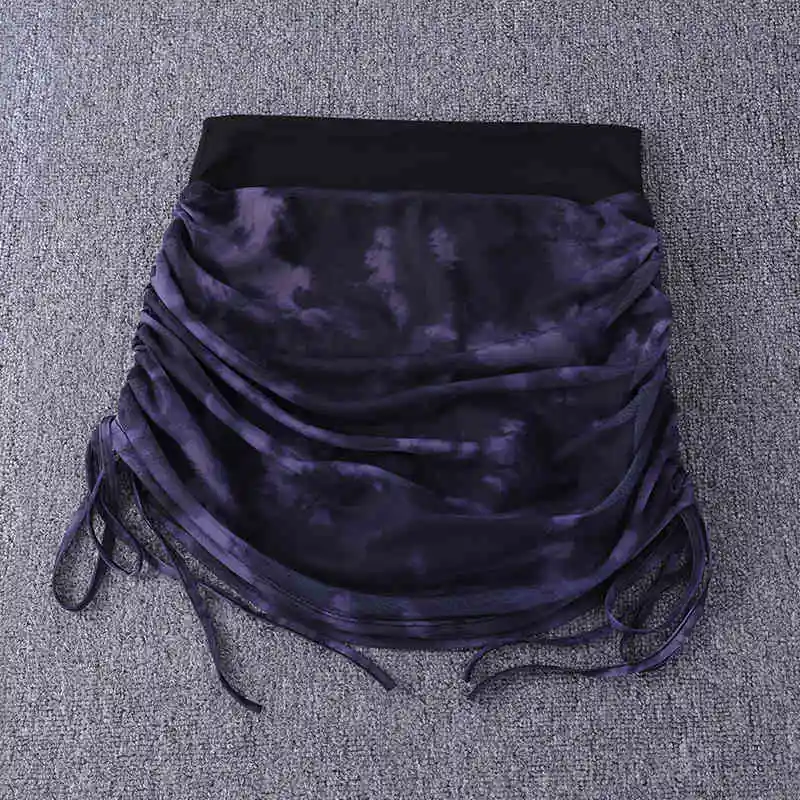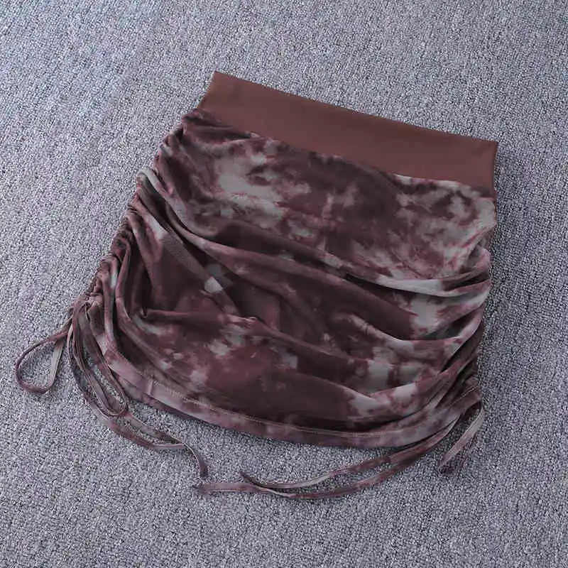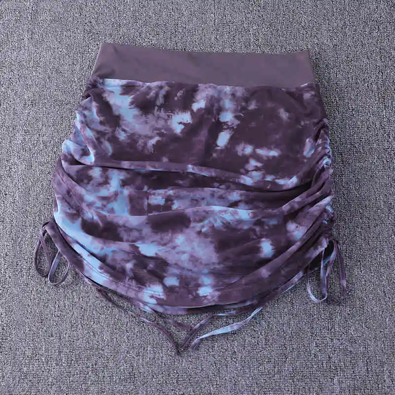Printed Tie Dyed Mesh Yoga Short Skirt Women Anti Shining Wrap Hip Skirt High Waist Sports Half Skirt Summer