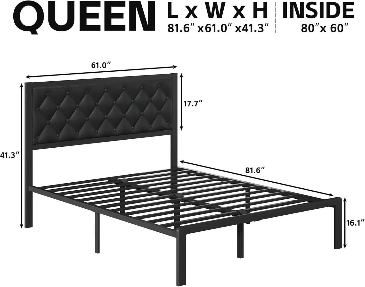 Queen Bed Frame with Headboard PU Leather Upholstered Bed Frame Platform,All Metal Slats Support Platform Bed Frame