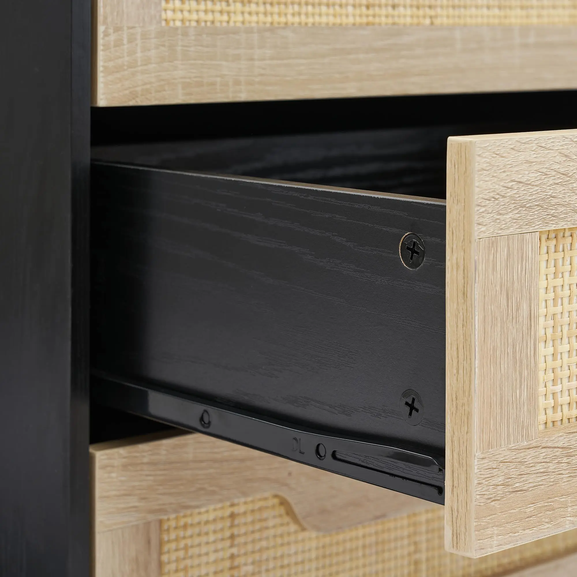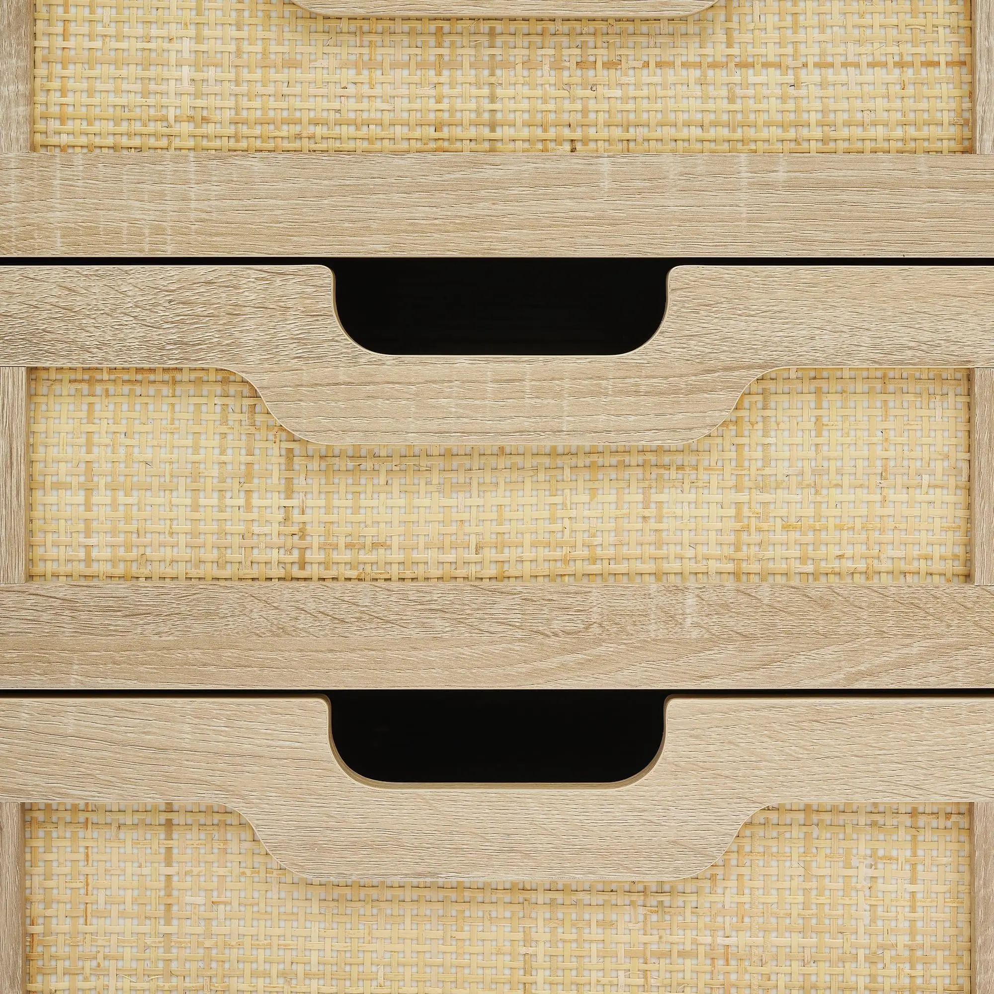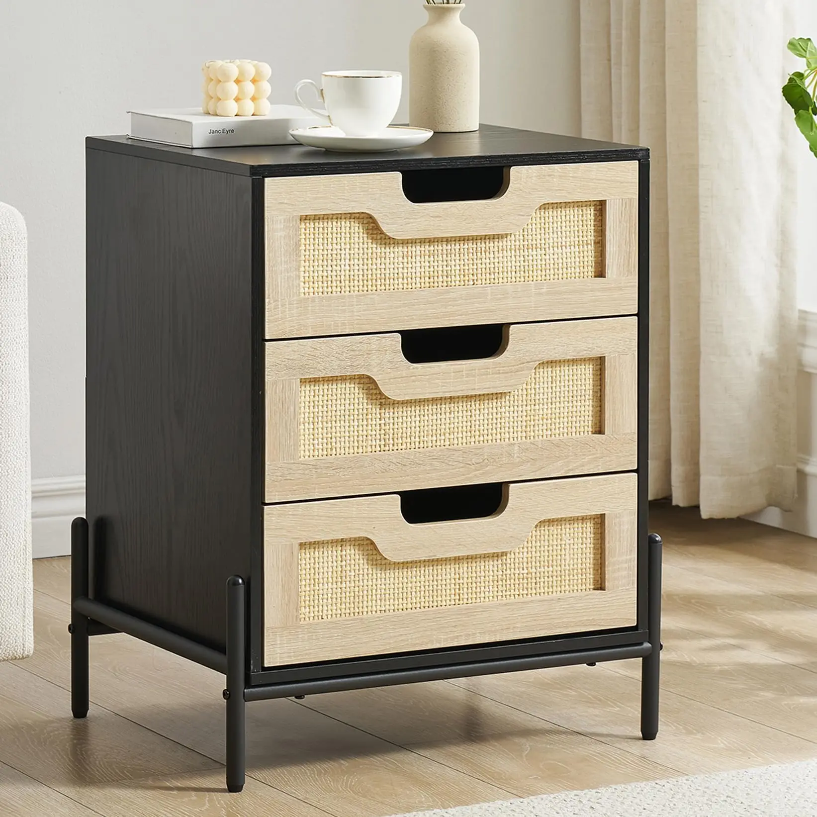 Rattan Nightstand for Apartments, 3 Natural Rattan Drawers Cabinet, Storage Shelves for Bedroom Living Room,Wooden End Tables