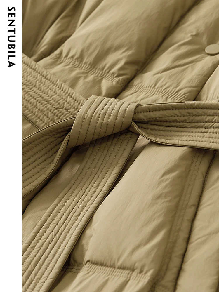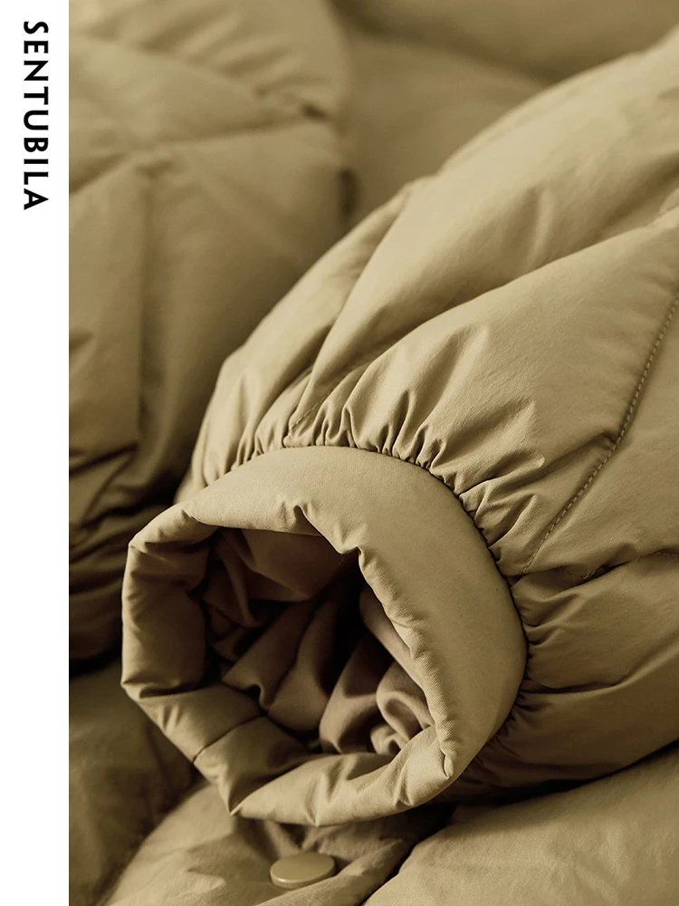 SENTUBILA Women’s Winter Puffer Down Jacket Women 2024 Hooded Lantern Sleeve Windproof Mid-Length Down Coats Ladies W44Y58448X