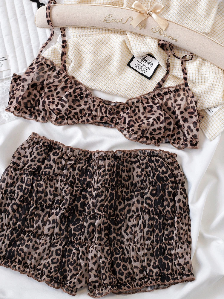 Street Leopard Print Camisole Underwear Tank Top Hottie Style Lingerie Set Bra Women Bralette