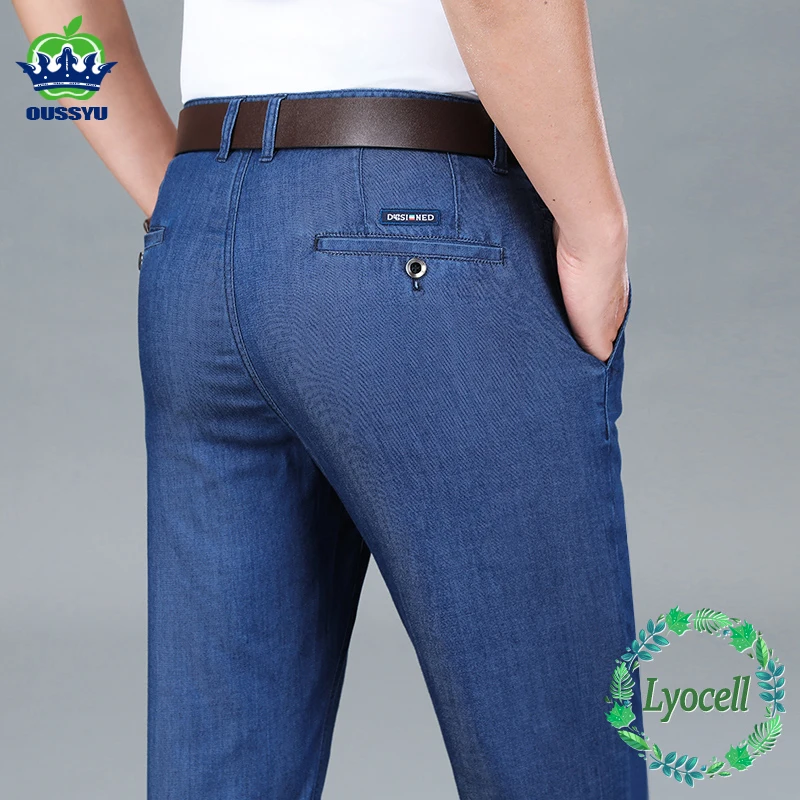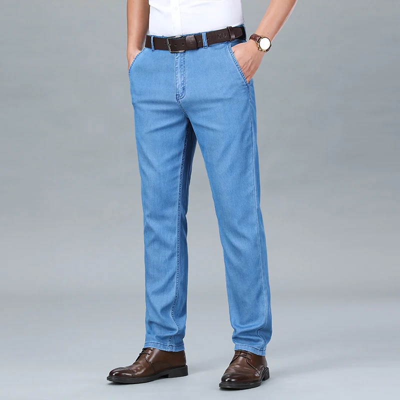 Summer Natural Lyocell Business Jeans Men Thin Classic Stretch Straight Office Denim Pants Male Brand Trousers Plus Size 40 42
