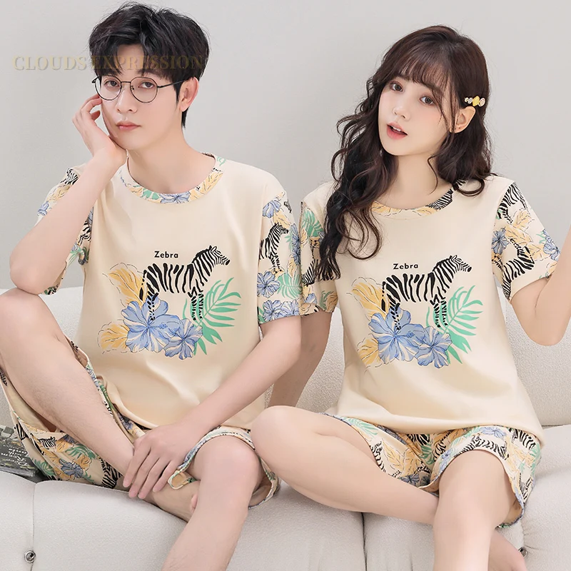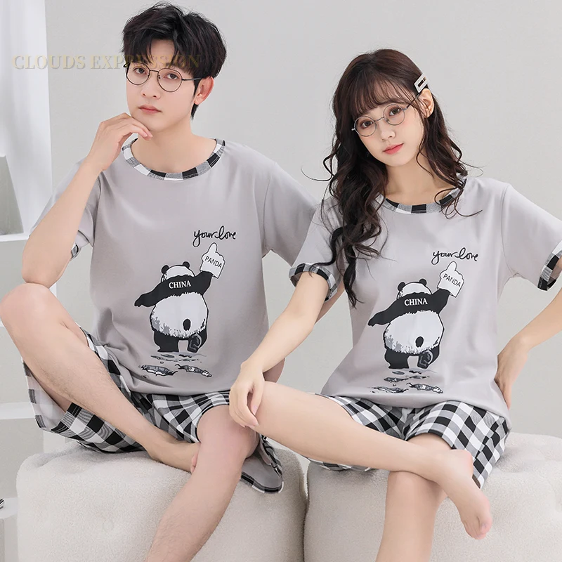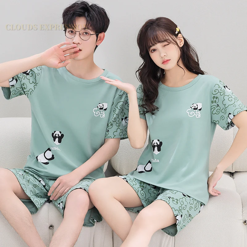 Summer New Knitted Cotton Couple Cartoon Men’s Pyjamas Red Pajamas Set Casual Male Sleepwear Pyjamas Night Pijamas 3XL Homewear